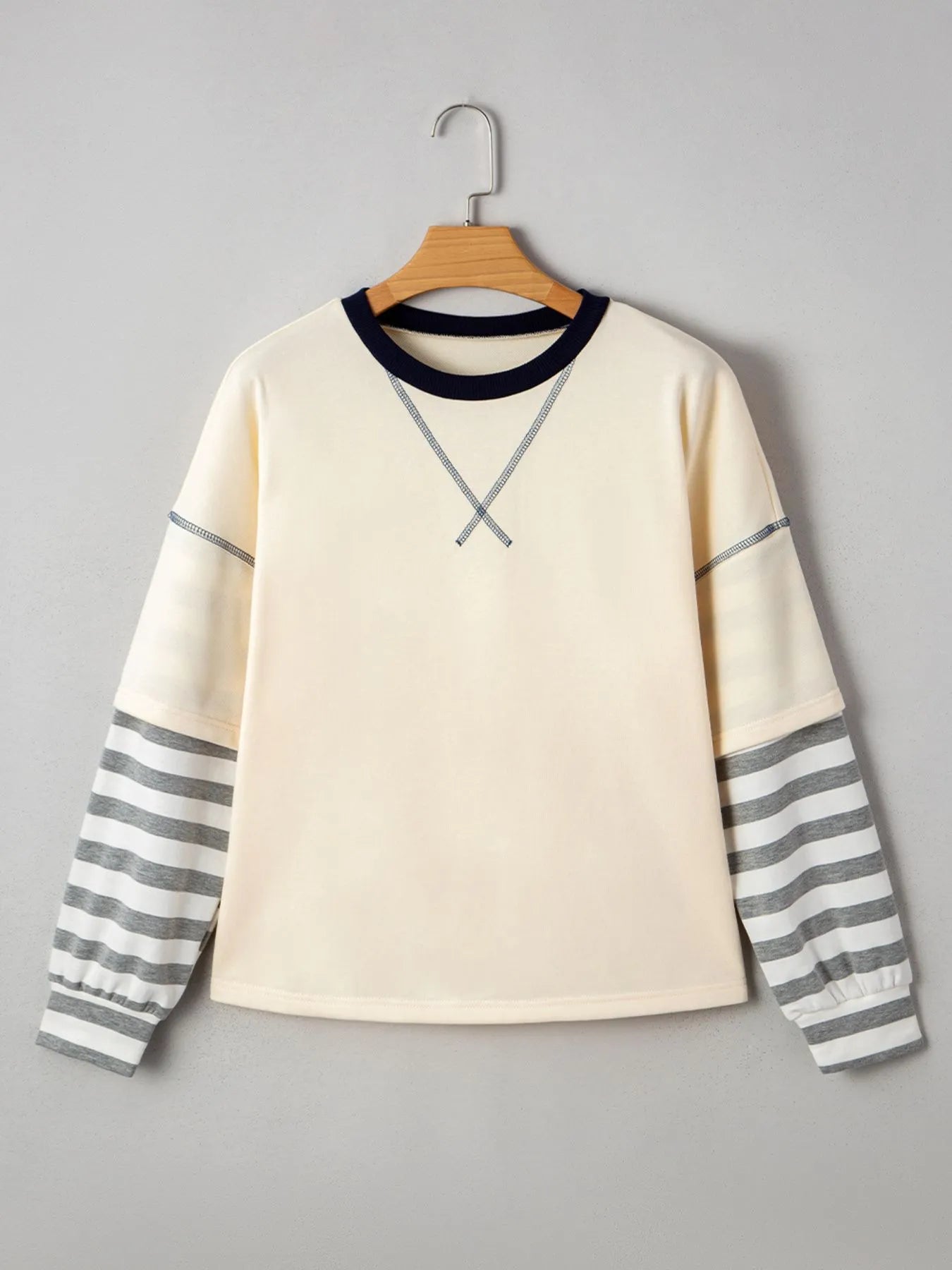 Striped Patchwork Long Sleeve Round Neck Two-in-one Top