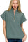 Zenana Ribbed High Neck Half Zip Top