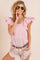 This stylish pink T-shirt features charming ruffle cap sleeves that add a feminine touch to your casual wardrobe. Made from soft, breathable cotton blend fabric, it offers all-day comfort with its form-fitting silhouette. The flattering scoop neckline and fashion pink hue make it perfect for casual outings, date nights, or everyday wear. The lightweight material ensures easy movement while the ruffle detailing adds a playful, romantic element. Pair with jeans, shorts, or skirts for versatile styling options. Machine washable for easy care.