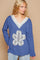 This stylish long sleeve T-shirt features a stunning sequined fleur-de-lis motif that adds glamour to casual wear. Crafted from soft cotton blend fabric for all-day comfort, it showcases a flattering deep V-neckline adorned with decorative white trim. The relaxed fit and beautiful periwinkle blue color make it perfect for casual outings, weekend gatherings, or layering under jackets. The metallic sequin embellishment catches light beautifully while maintaining easy care with machine washable convenience. Ideal for fashion-forward women seeking comfortable yet stylish casual wear.