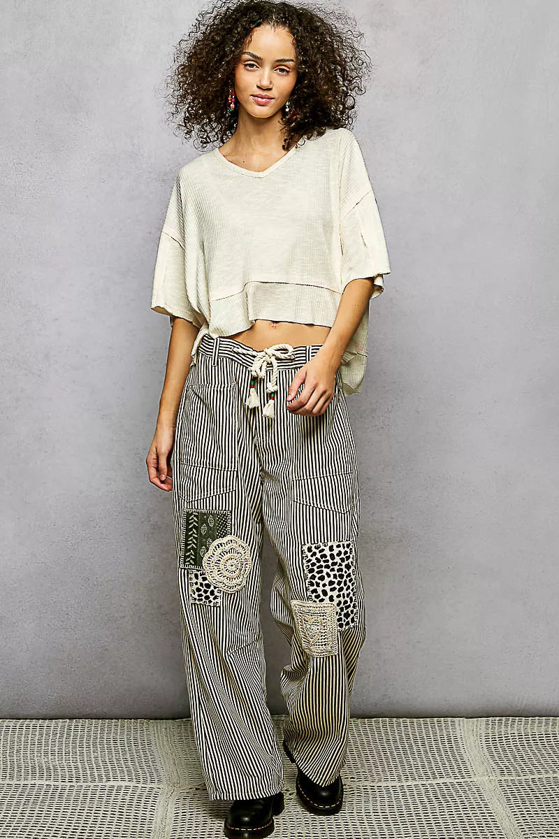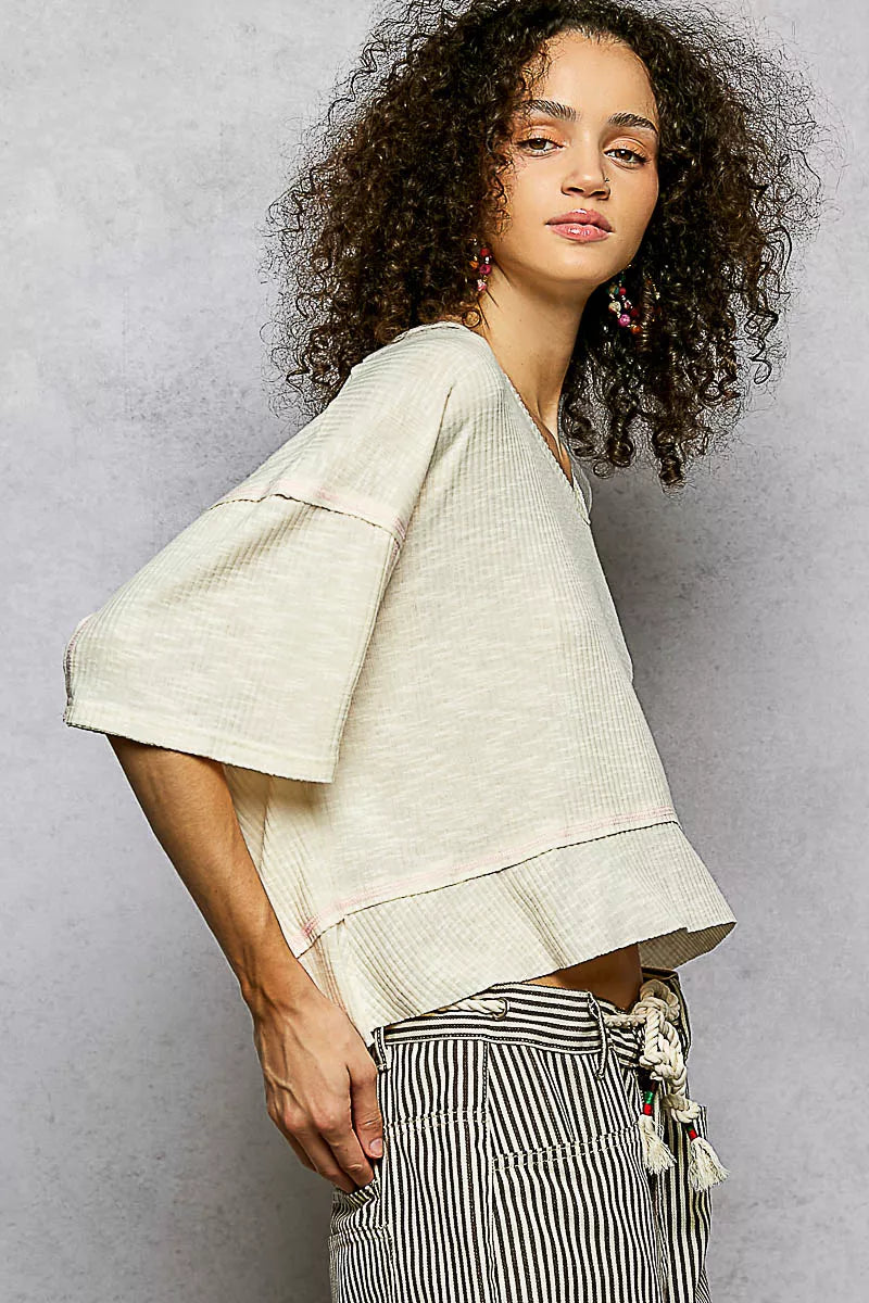POL Short Sleeve Ccopped Rib T-Shirt with Contrast Stitch Detail