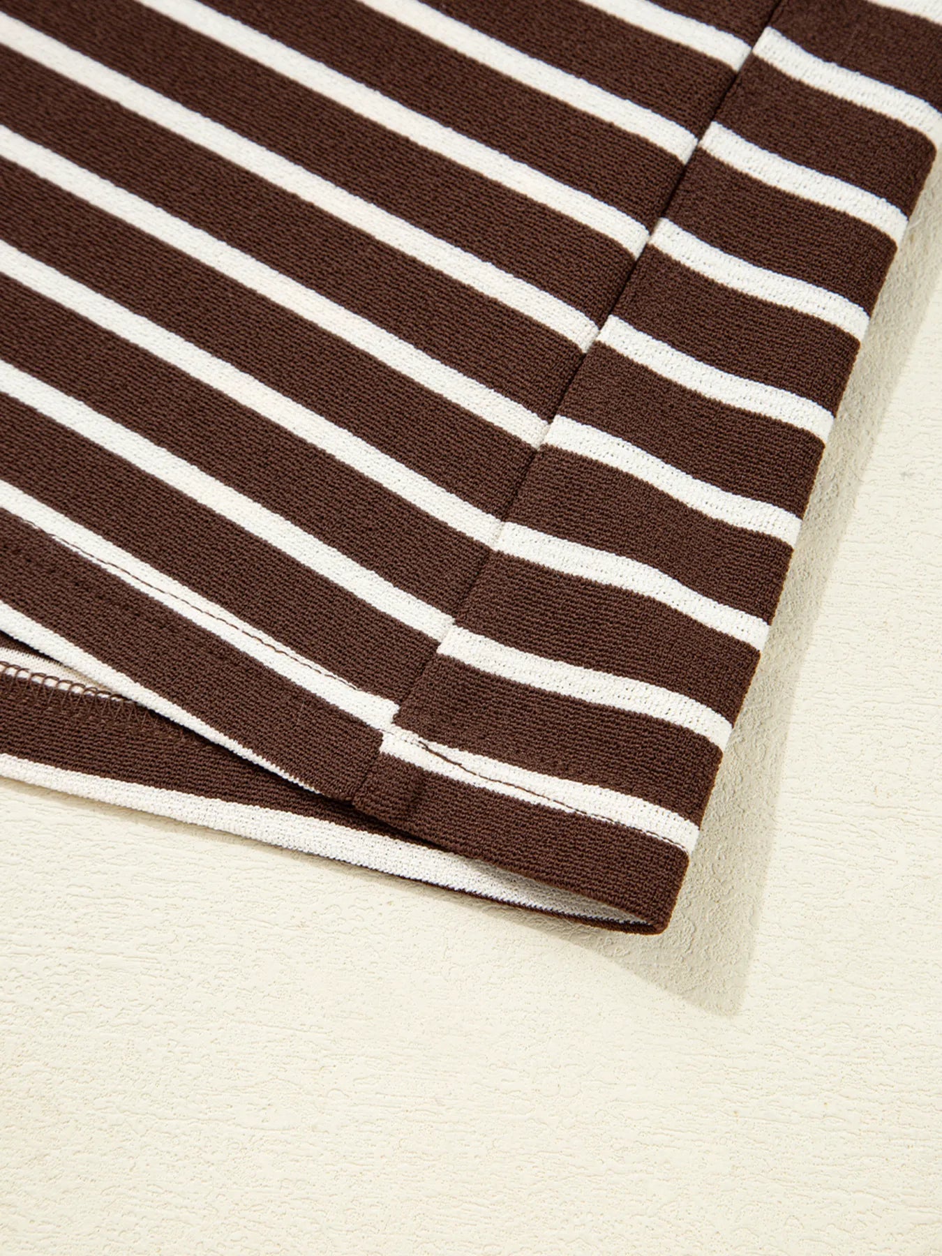 Stripe Cropped Crew Neck Long Sleeve T Shirt