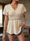 Waffle Knit V-Neck T-Shirt with Lace Trim Detail