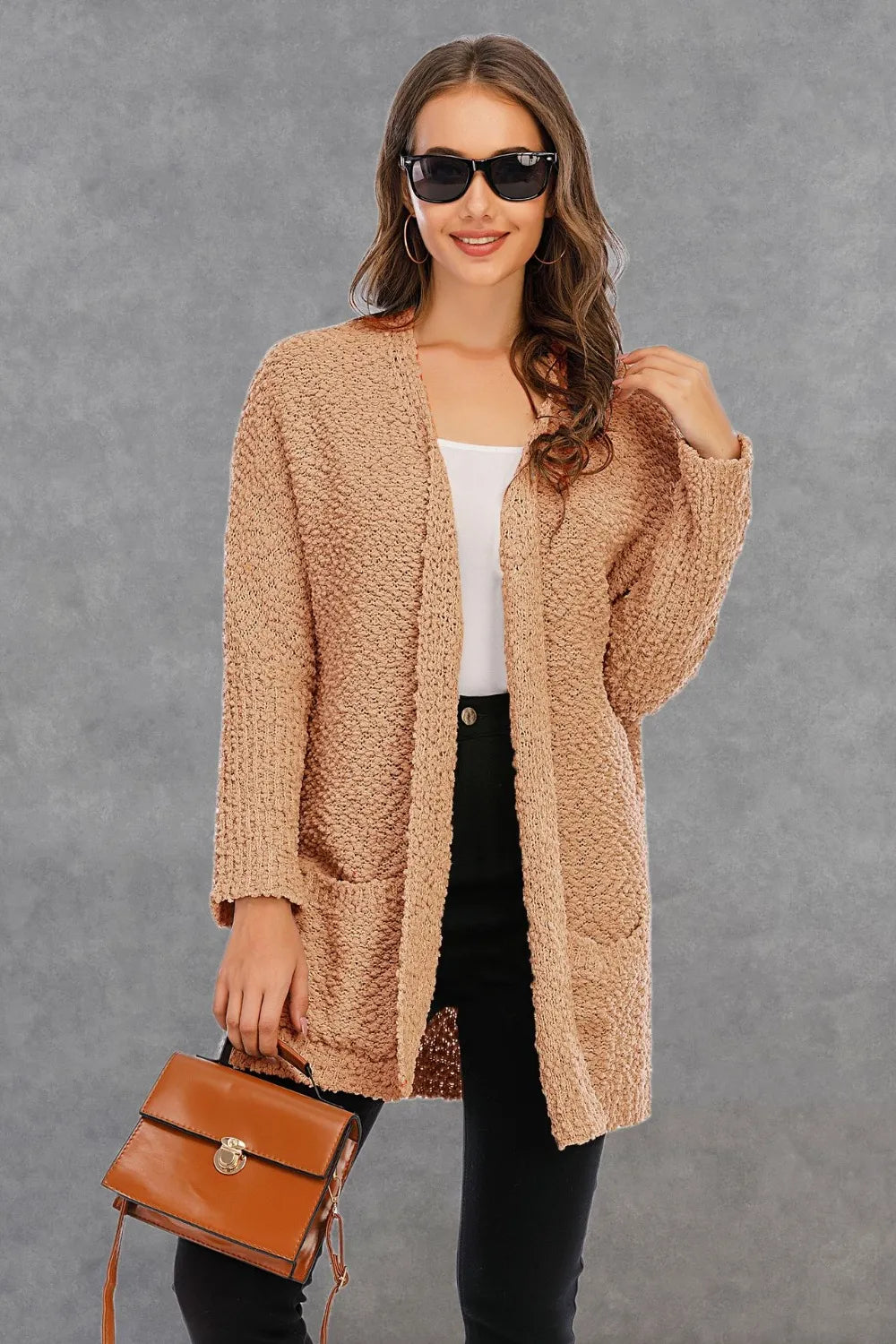 Angel Wings Pocketed Open Front Long Sleeve Cardigan