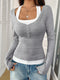 BiBi Cord Rib Combo V Neck Jersey Knit Top