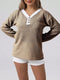 This stunning vibrant pink V-neck T-shirt combines comfort and style with its relaxed fit design. Made from soft, breathable textured fabric, it features a flattering deep V-neckline and functional chest pocket. The eye-catching pink color makes a bold fashion statement while the loose, comfortable cut ensures all-day wearability. Perfect for casual outings, weekend activities, or layering, this versatile piece offers contemporary style with easy-care convenience. The premium fabric blend provides durability and softness, making it an essential wardrobe staple for the modern woman.