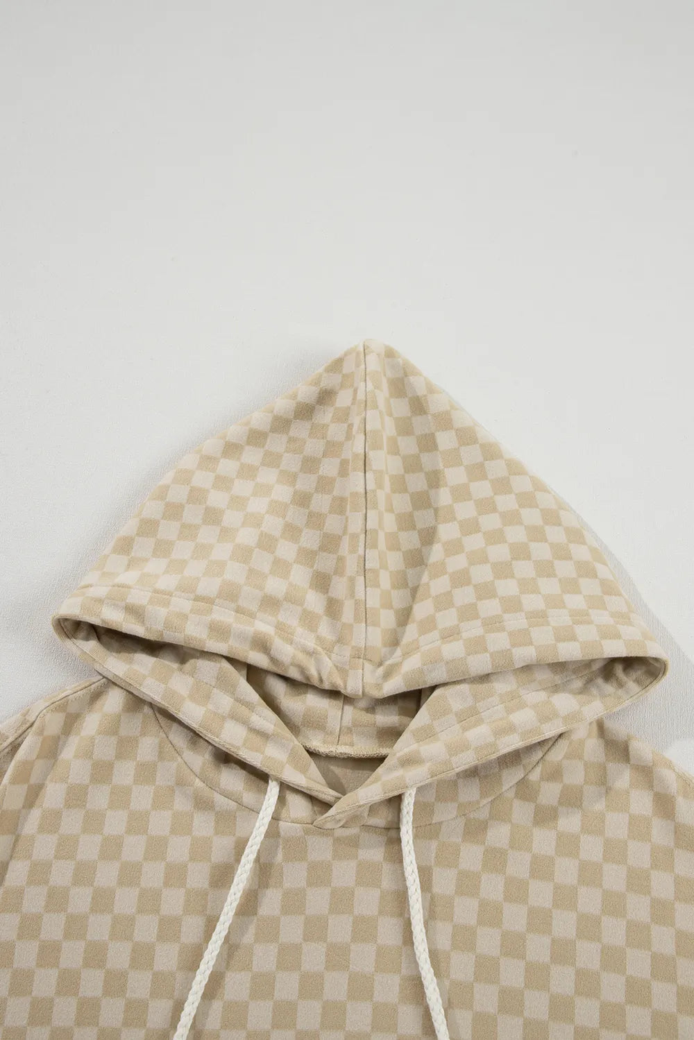 Checkered Print Kangaroo Pocket Drawstring Hoodie