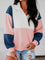 Colorblock Patchwork Half Button Baggy Sweatshirt