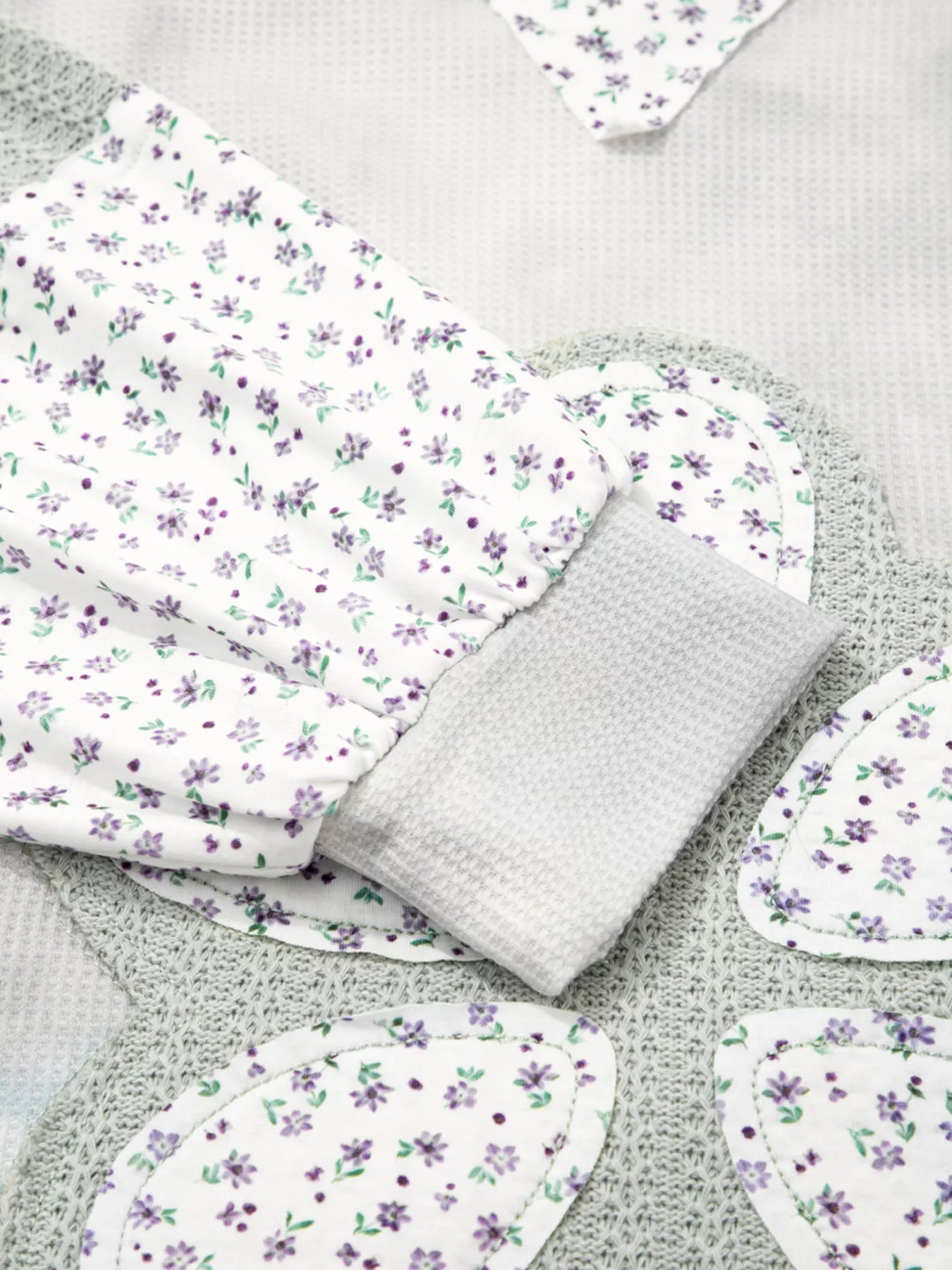 Floral Patched Waffle Textured V Neck Casual Hooded Top