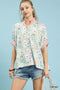 Floral Ruffled Bubble Sleeve Tie Neck Blouse