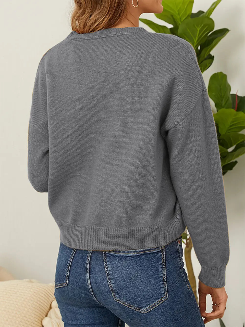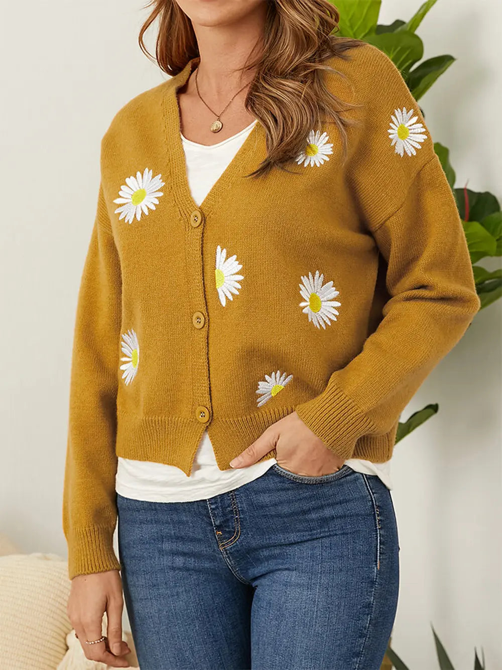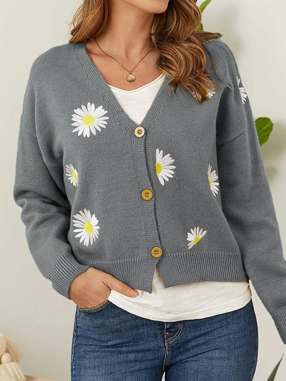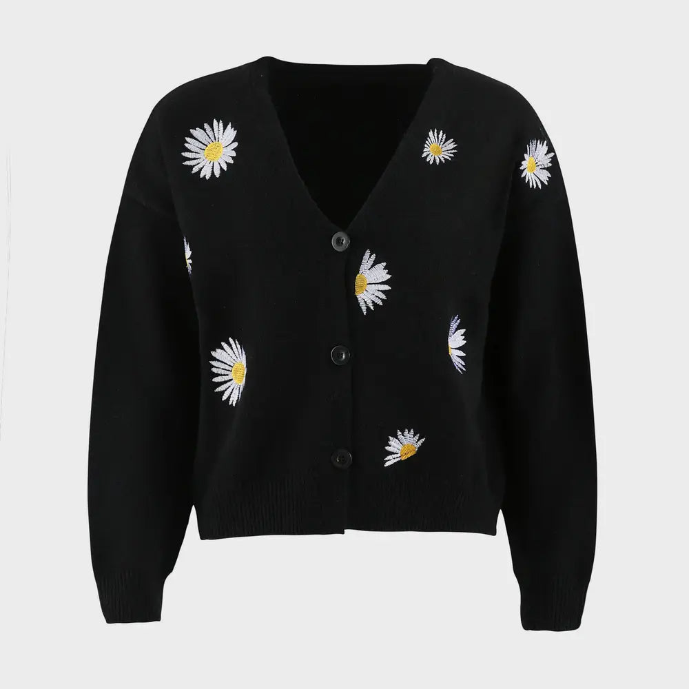 Flower Button Front Dropped Shoulder Cardigan