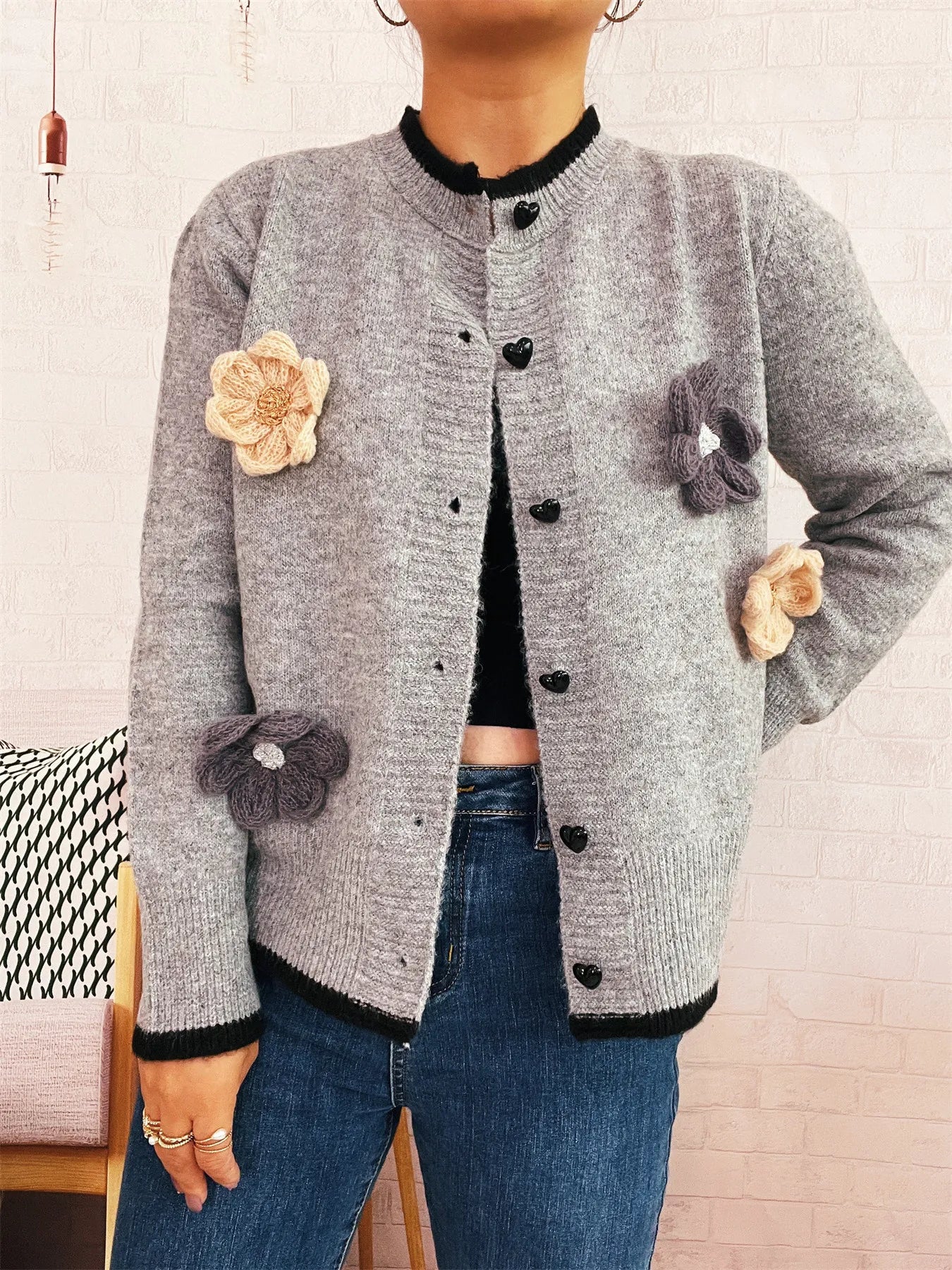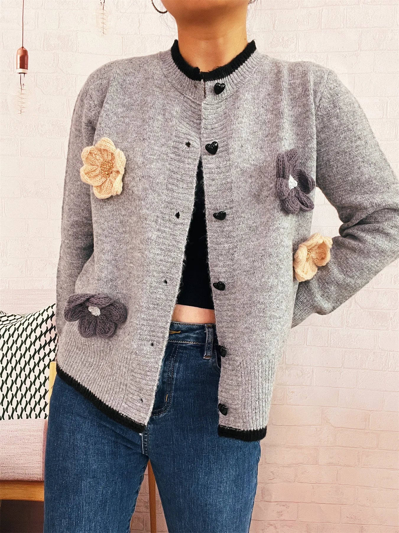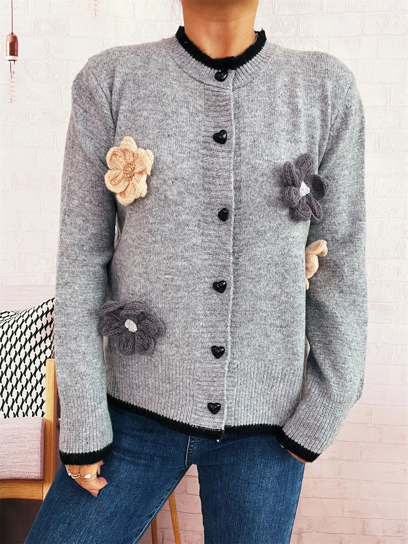 Flower Button Up Long Sleeve Cardigan