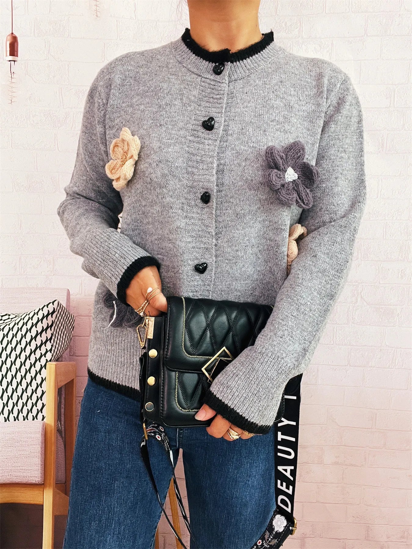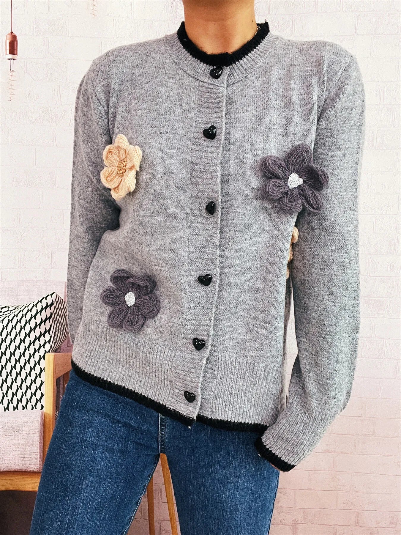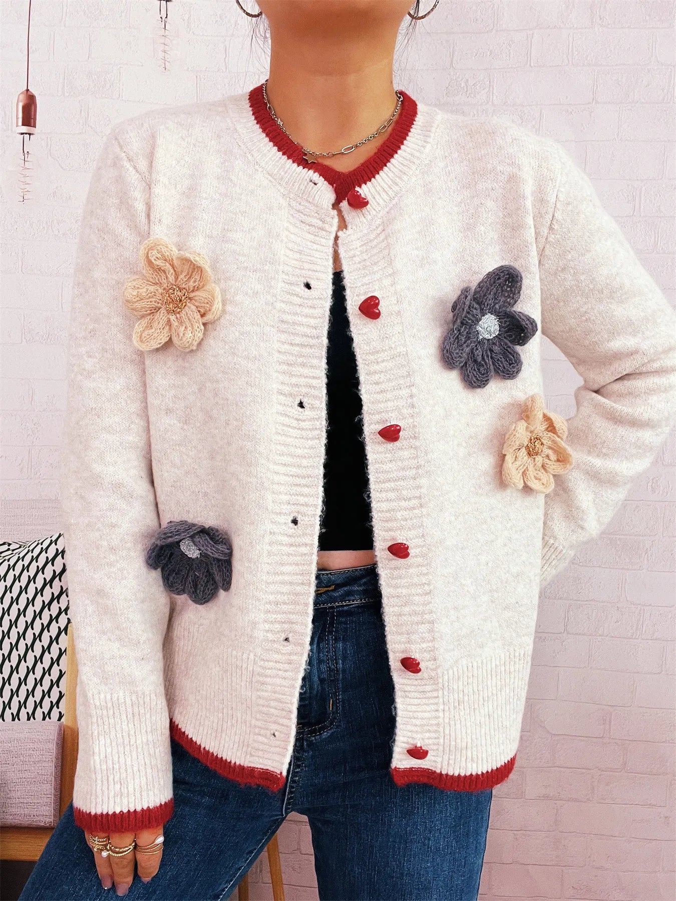 Flower Button Up Long Sleeve Cardigan