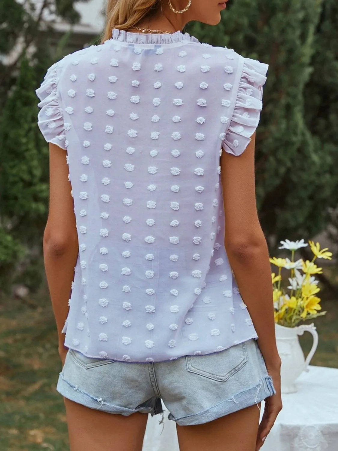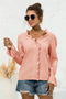 Buttoned V-Neck Ruffle Trim...$49.99