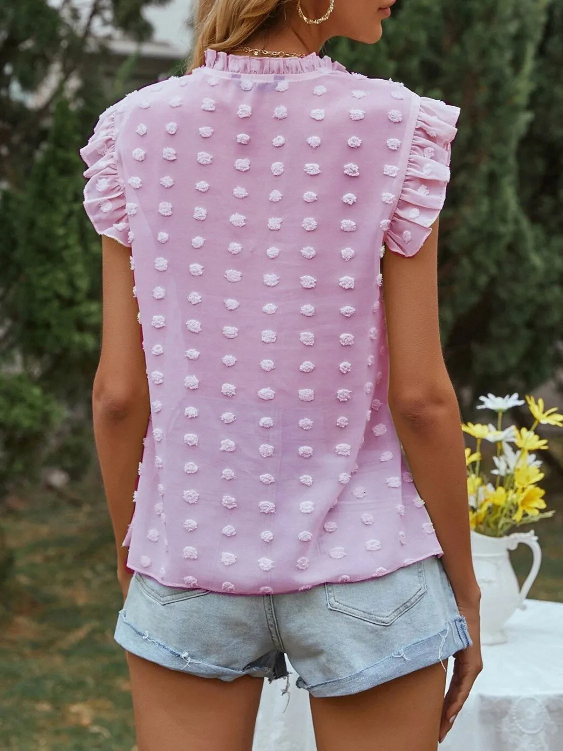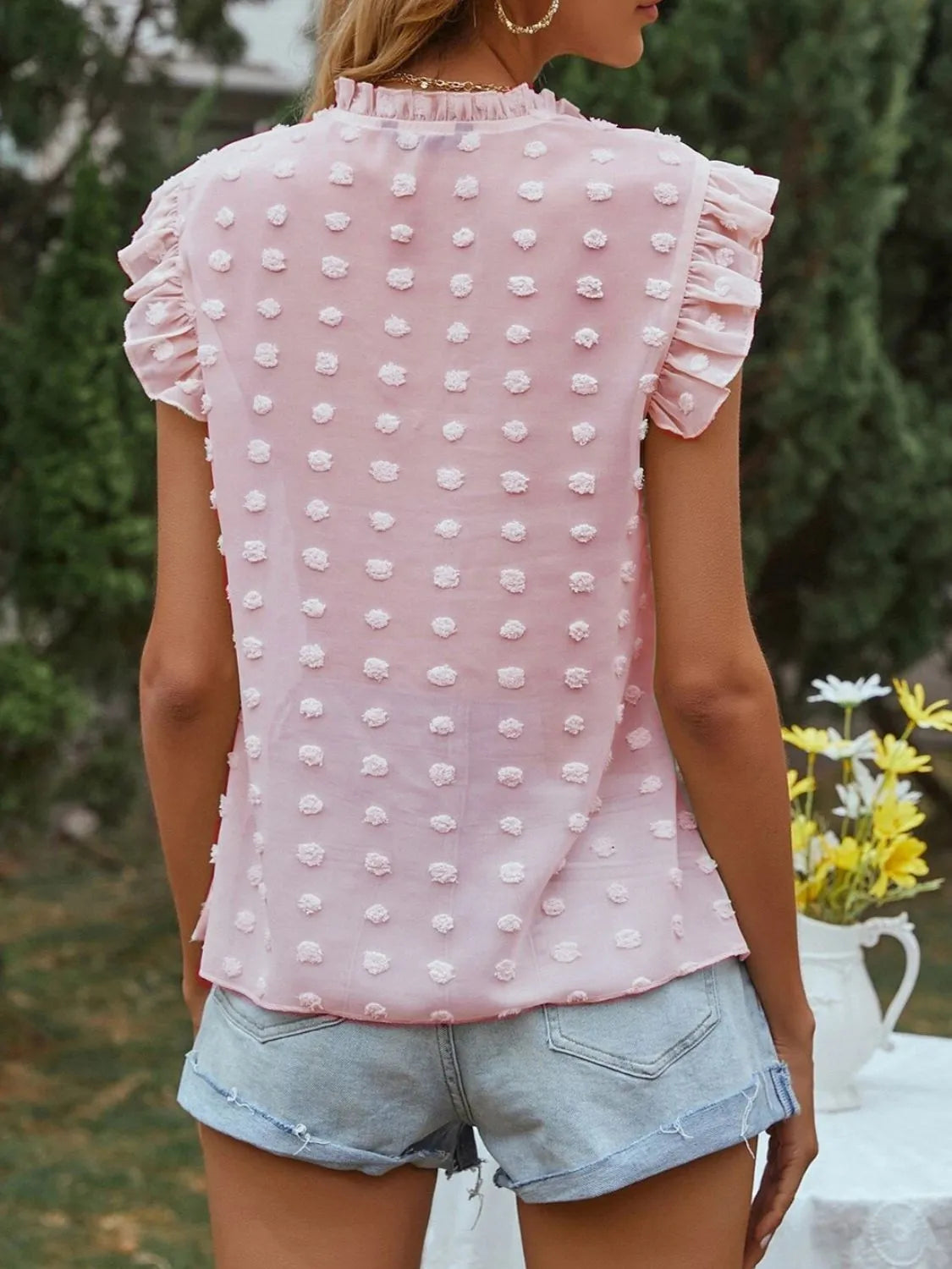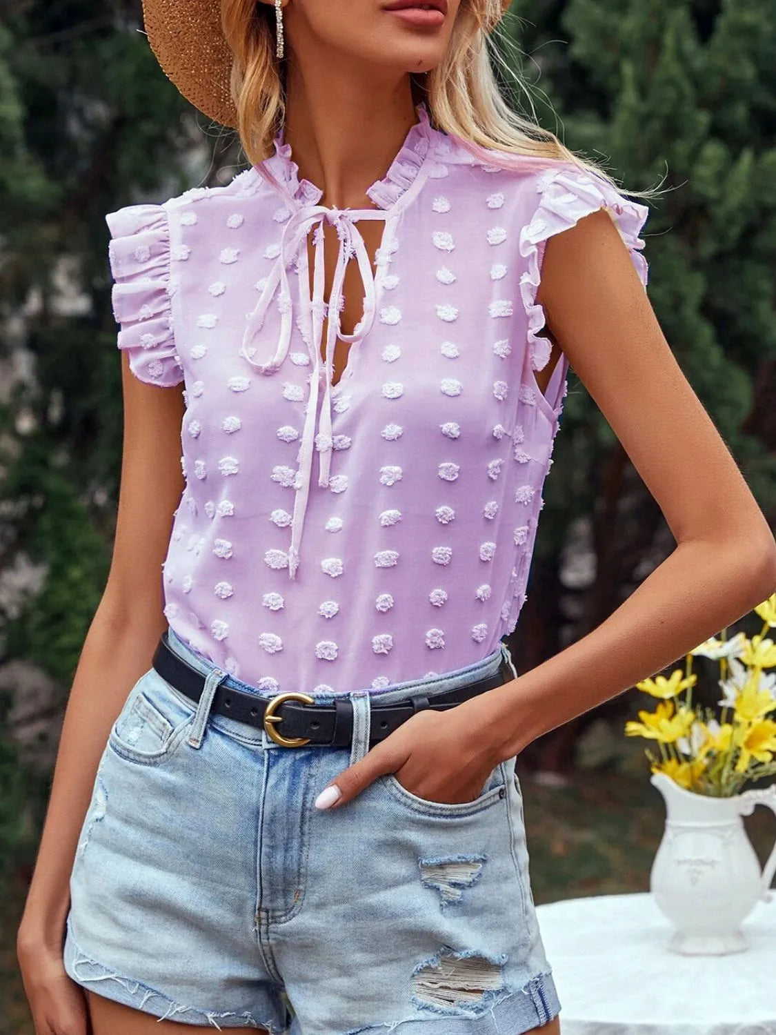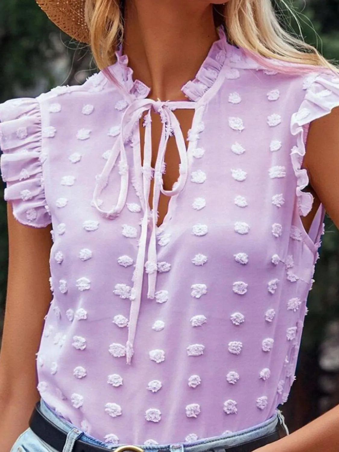 Frill Tie Neck Cap Sleeve Blouse
