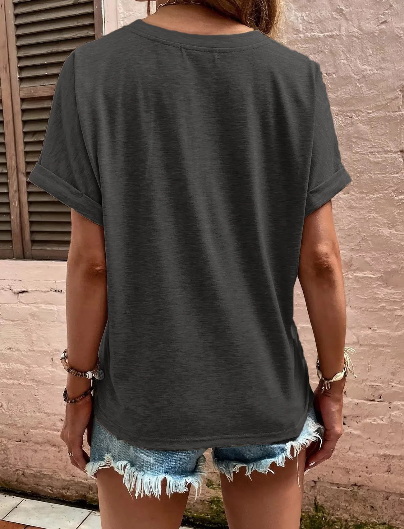 Full Size Notched Short Rolled Sleeve Top Plus Size