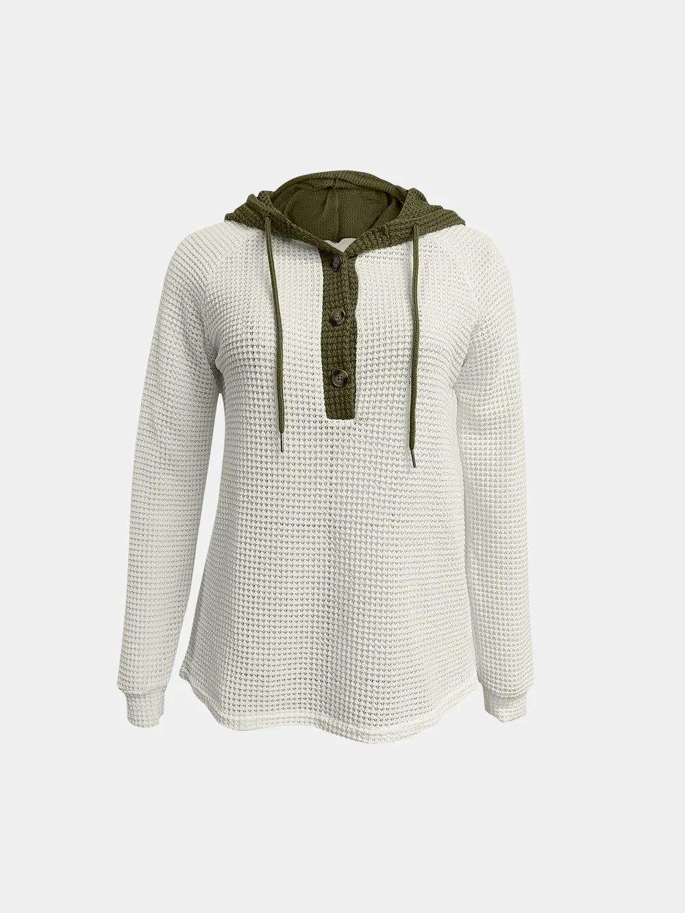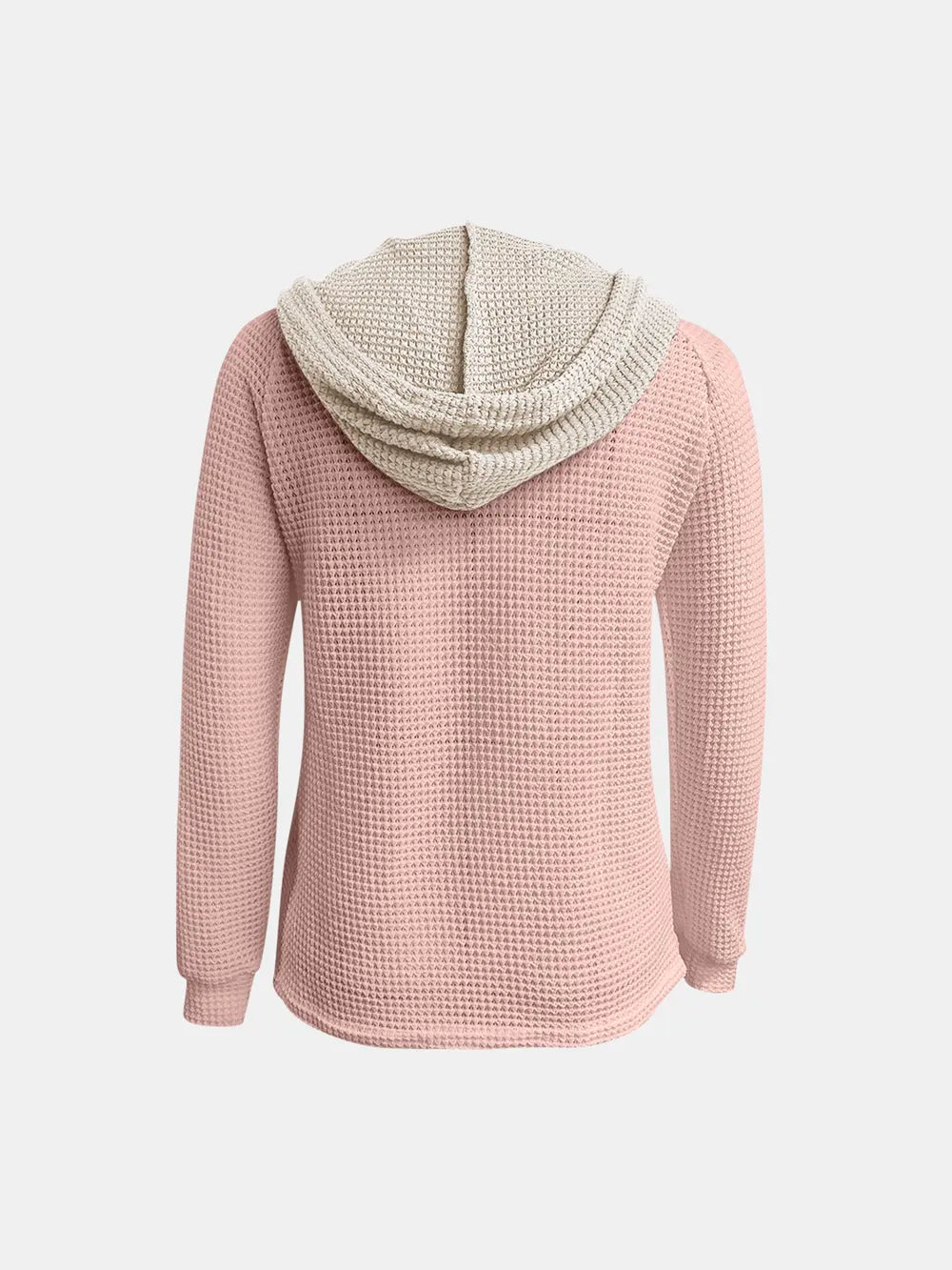 Full Size Waffle-Knit Contrast Long Sleeve Hoodie