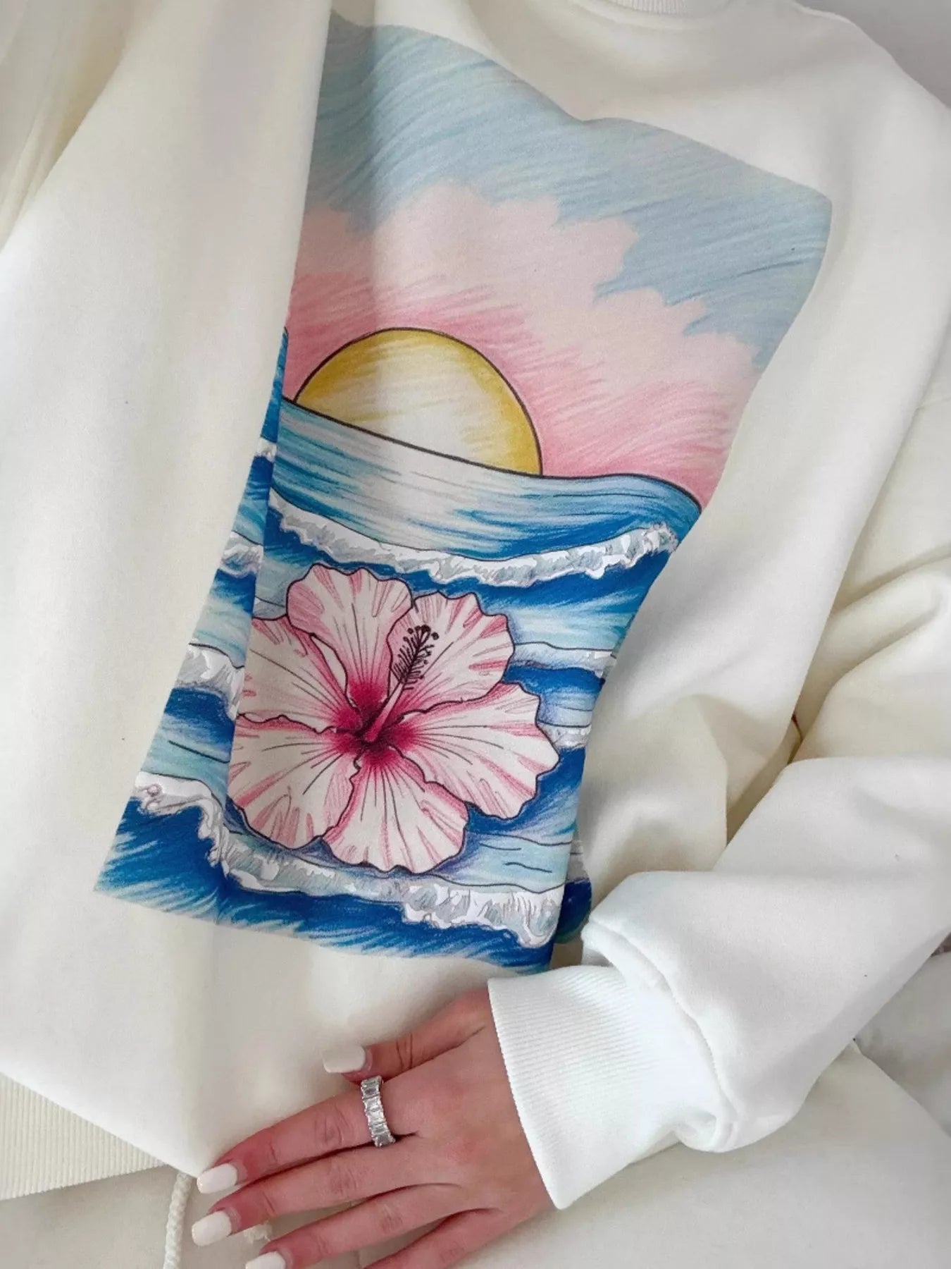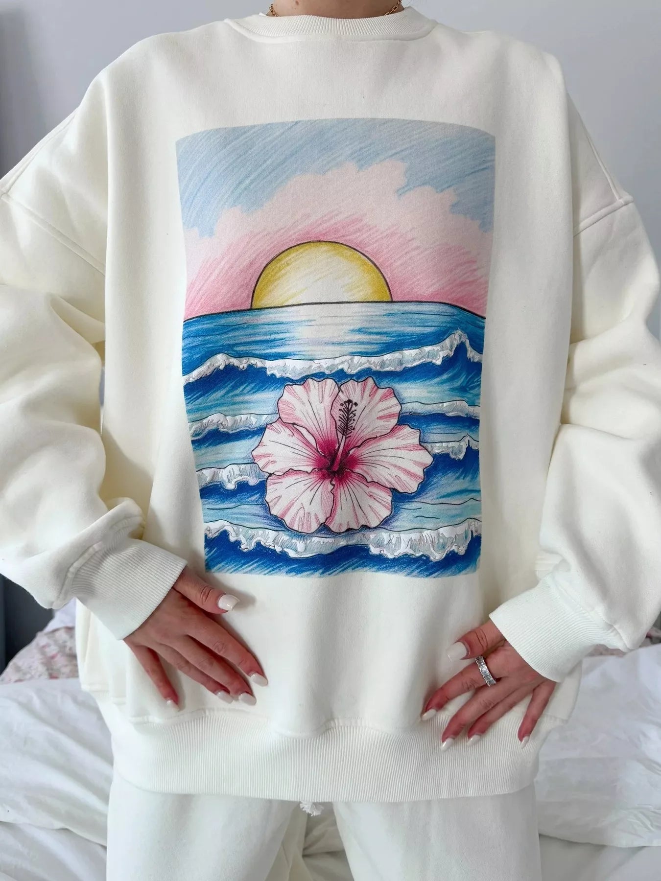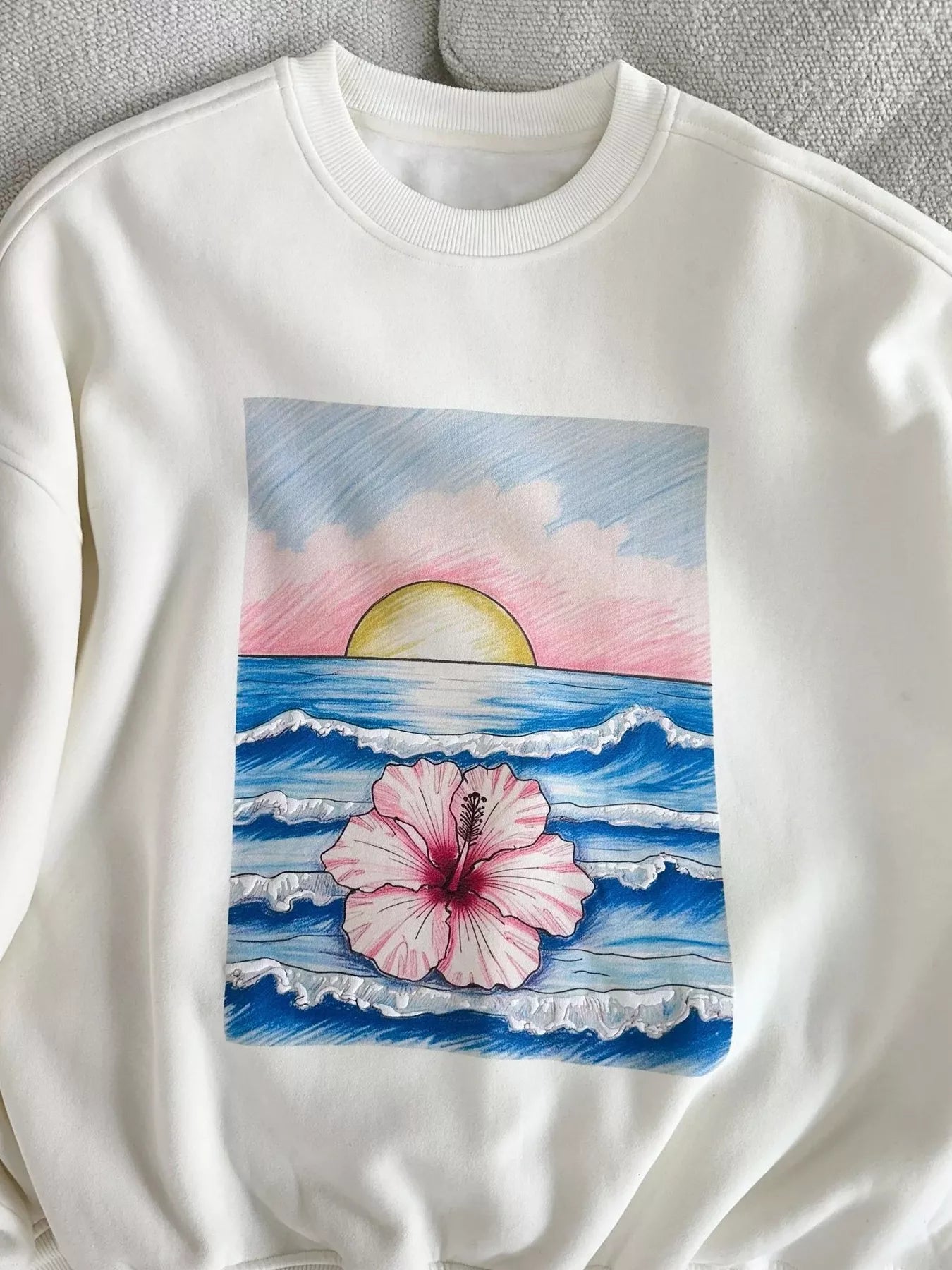 Graphic Round Neck Drop Shoulder Sweatshirt