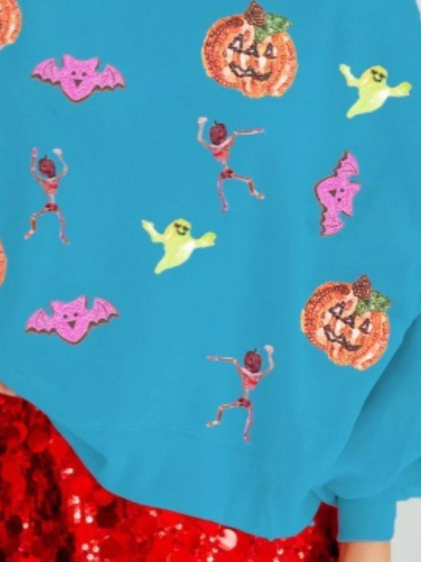 Halloween Sequin Round Neck Long Sleeve Sweatshirt