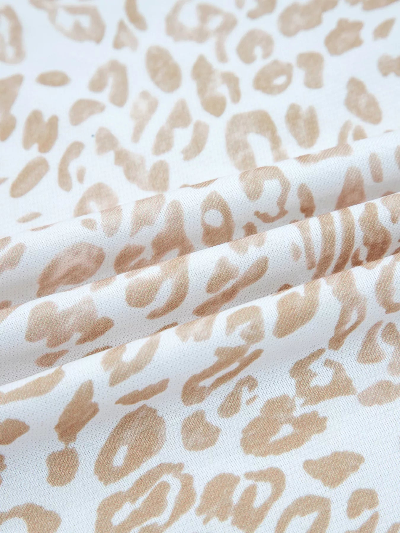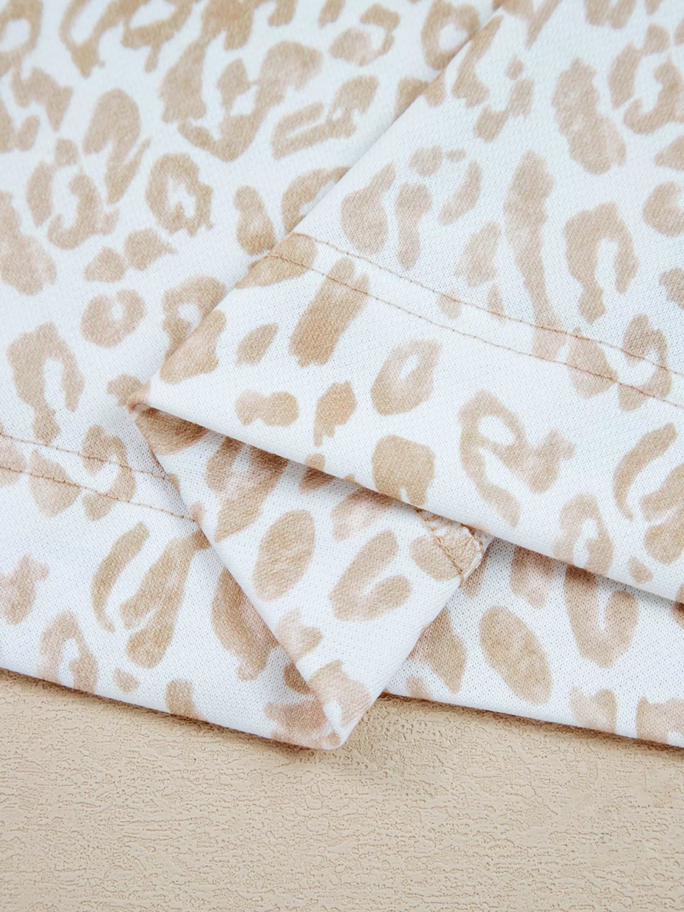 Leopard Ruffle Detail Ribbed Trim Round Neck Sweatshirt