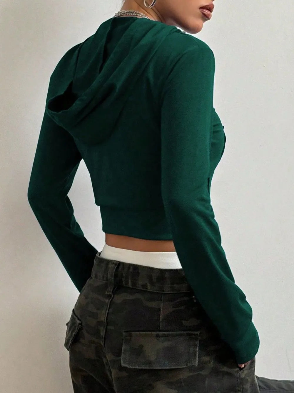 Letter Graphic Zip Up Long Sleeve Hoodie