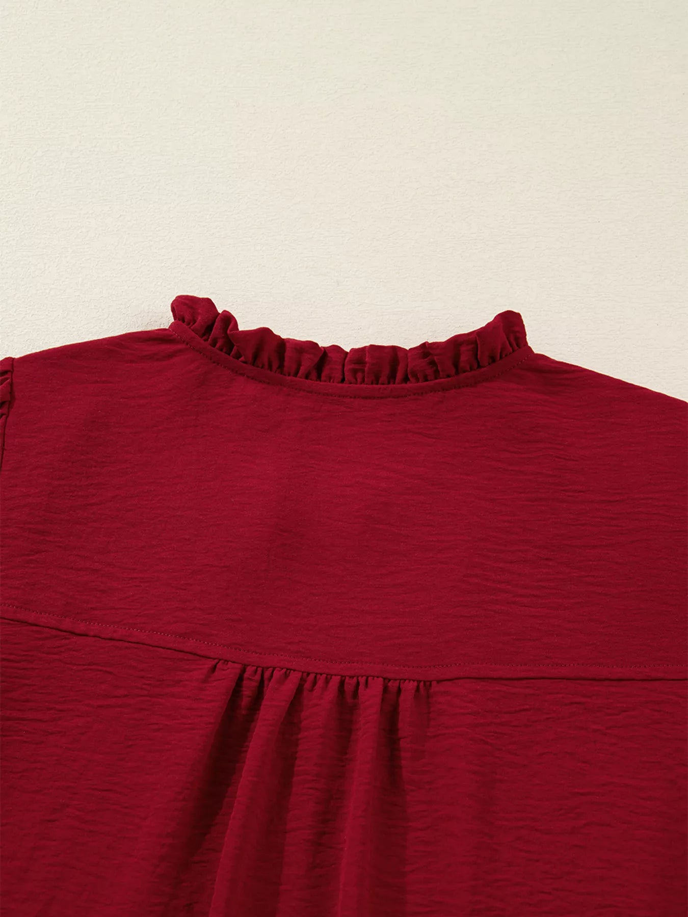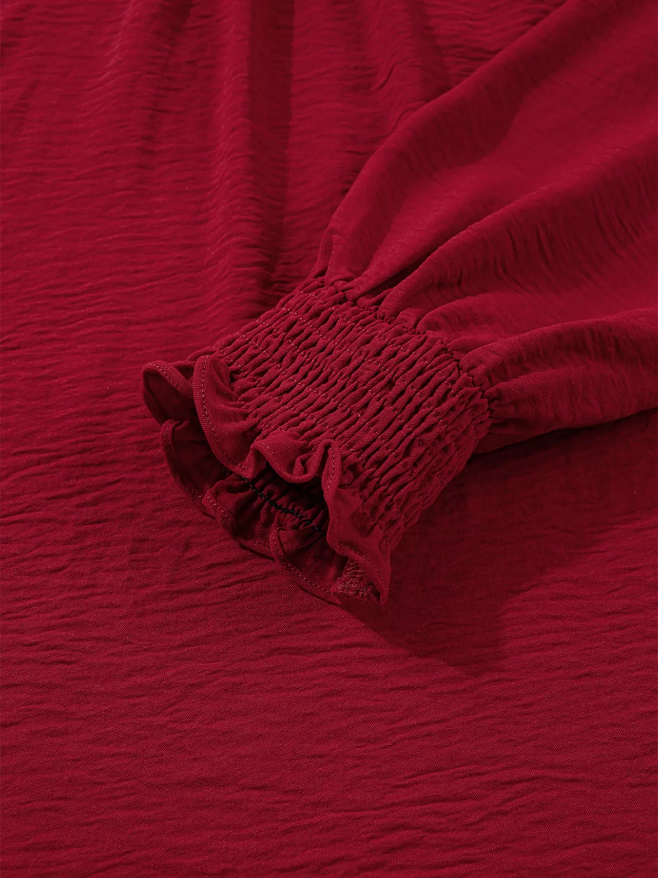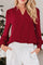 Notched Neck Shirred Cuff Long Sleeve Blouse