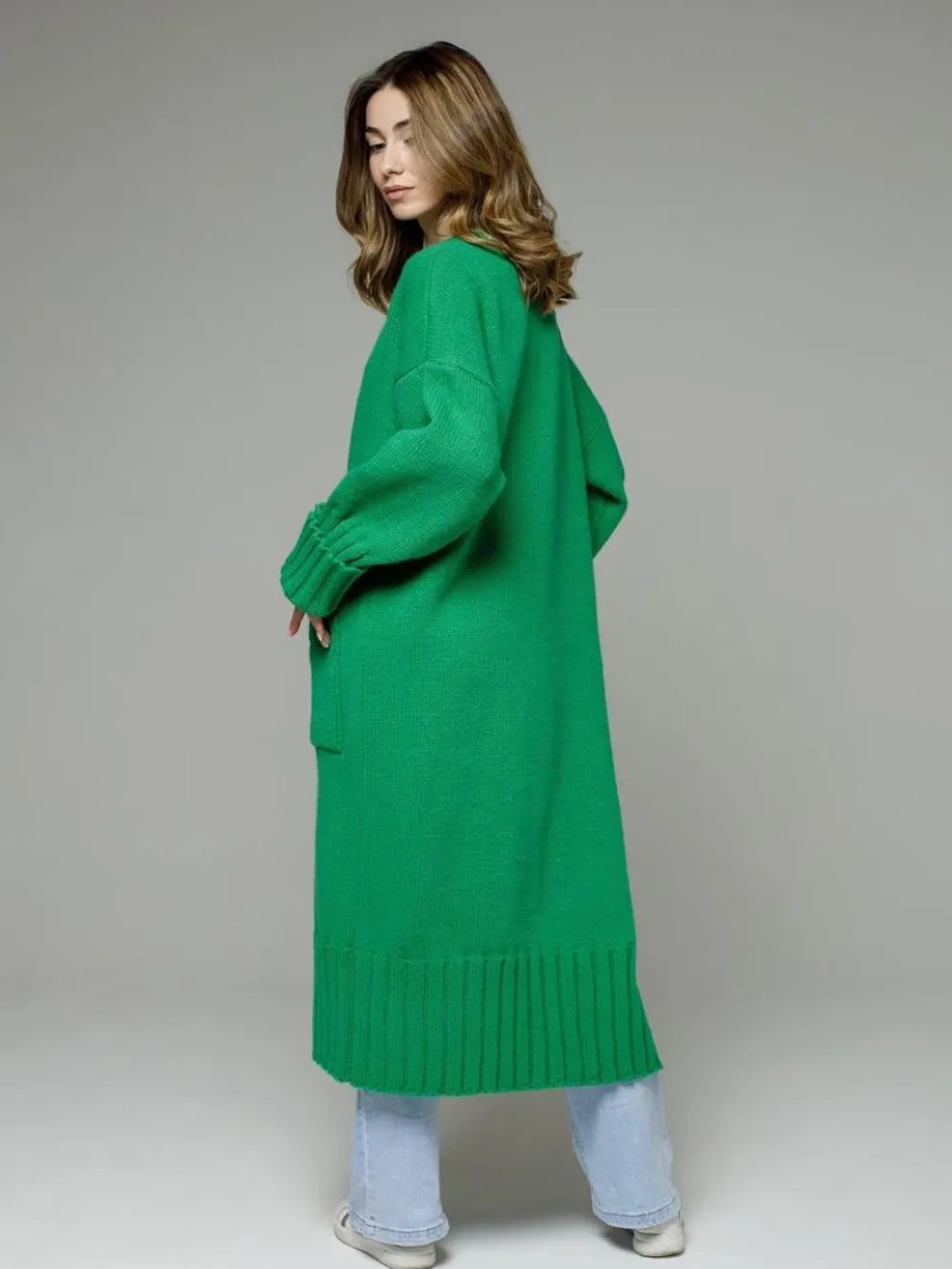 Pocketed Open Front Dropped Shoulder Cardigan