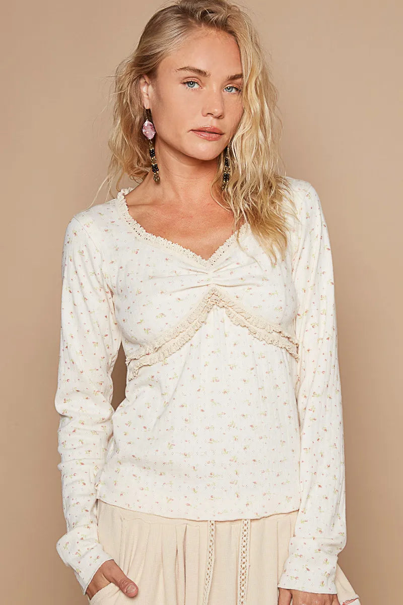 This floral V-neck long sleeve t-shirt combines a romantic print with a flattering neckline for a feminine and stylish look. The long sleeves provide coverage and warmth, making it perfect for transitioning between seasons. Pair this top with your favorite jeans or skirts for an effortlessly chic outfit. Embrace floral charm and timeless elegance with this versatile t-shirt.