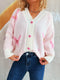 Printed Button Up V-Neck Long Sleeve Cardigan with Pockets