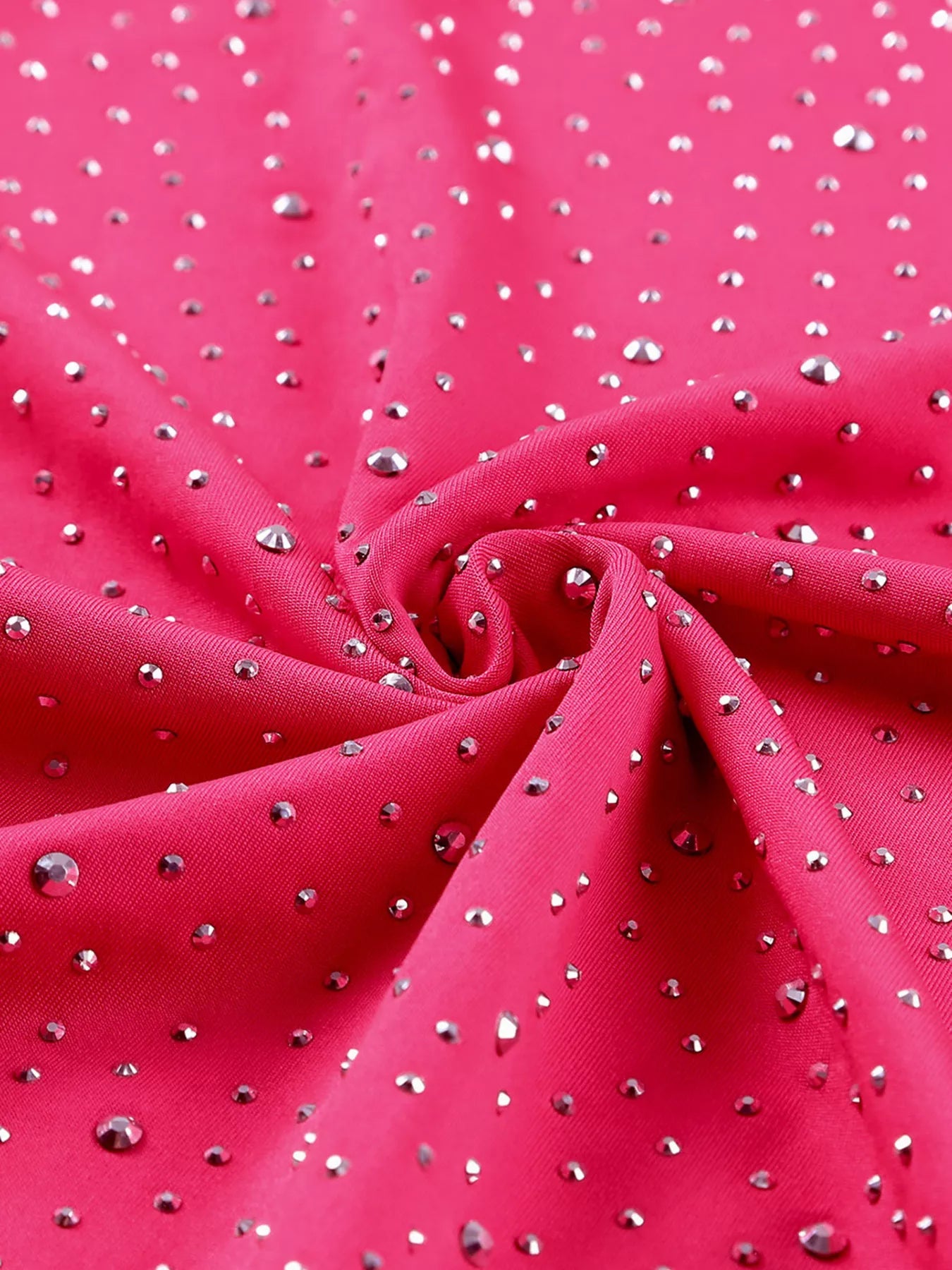 Rhinestone Round Neck Long Sleeve Bodysuit