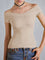 Ribbed V-Neck Cap Sleeve Fitted T-Shirt