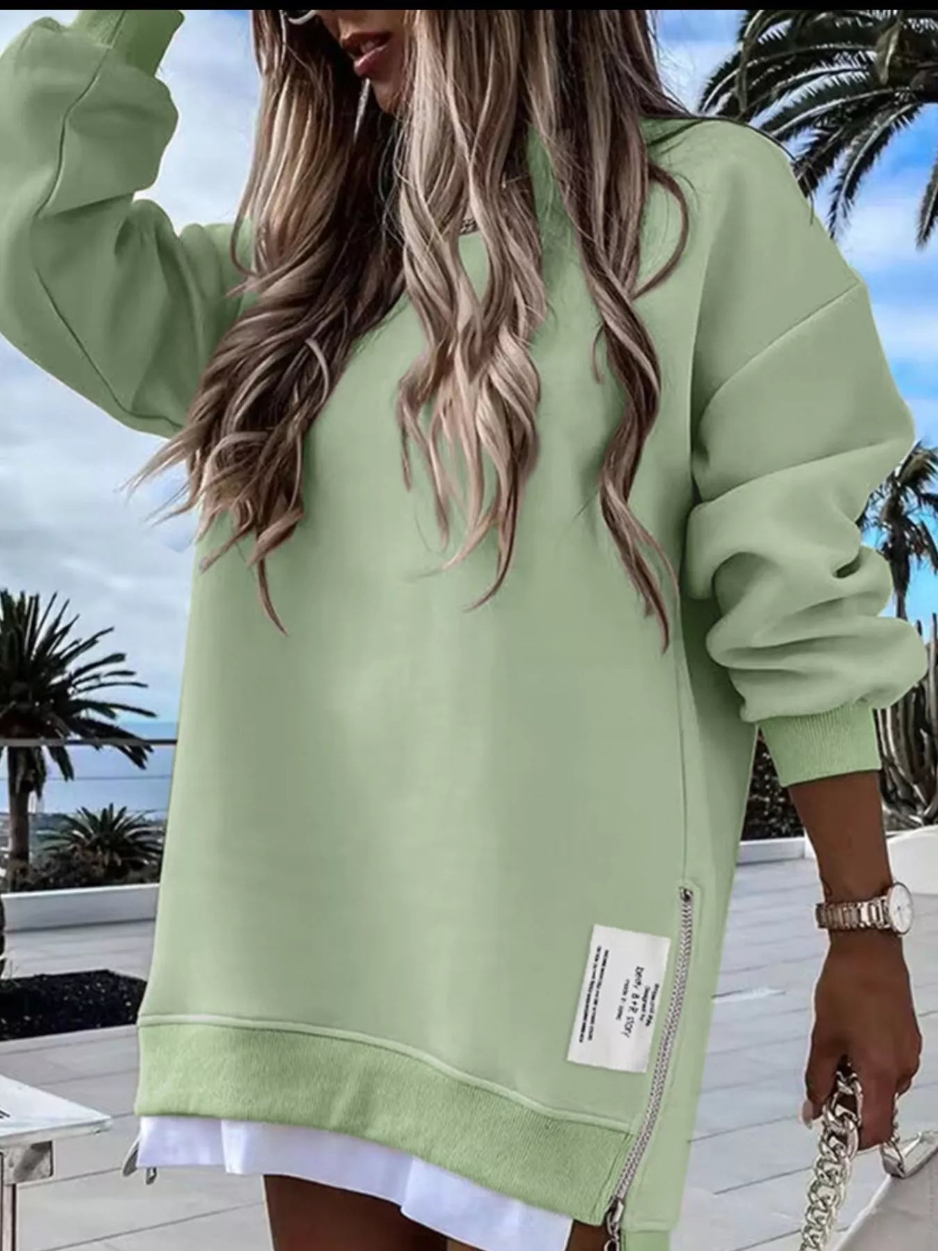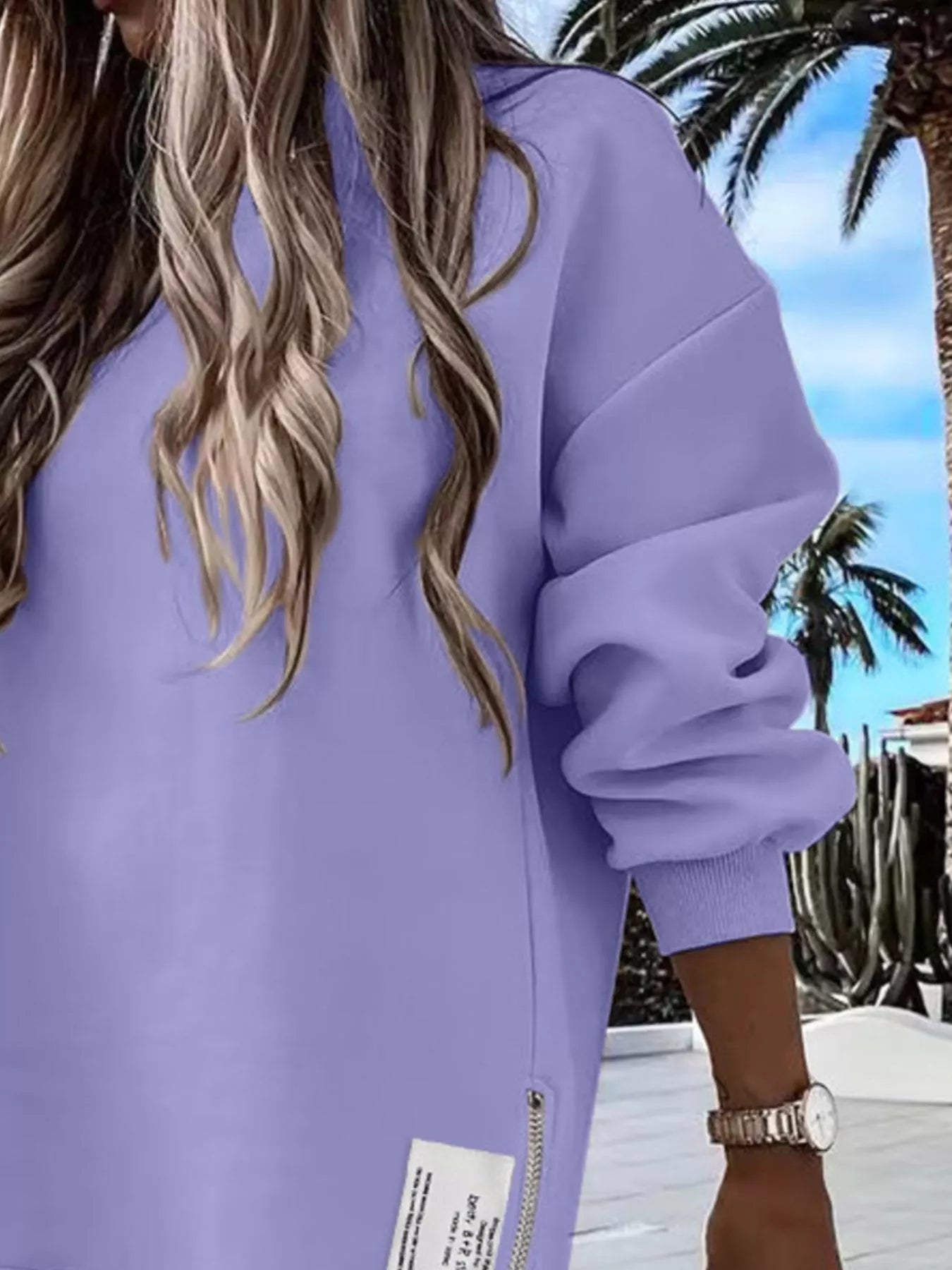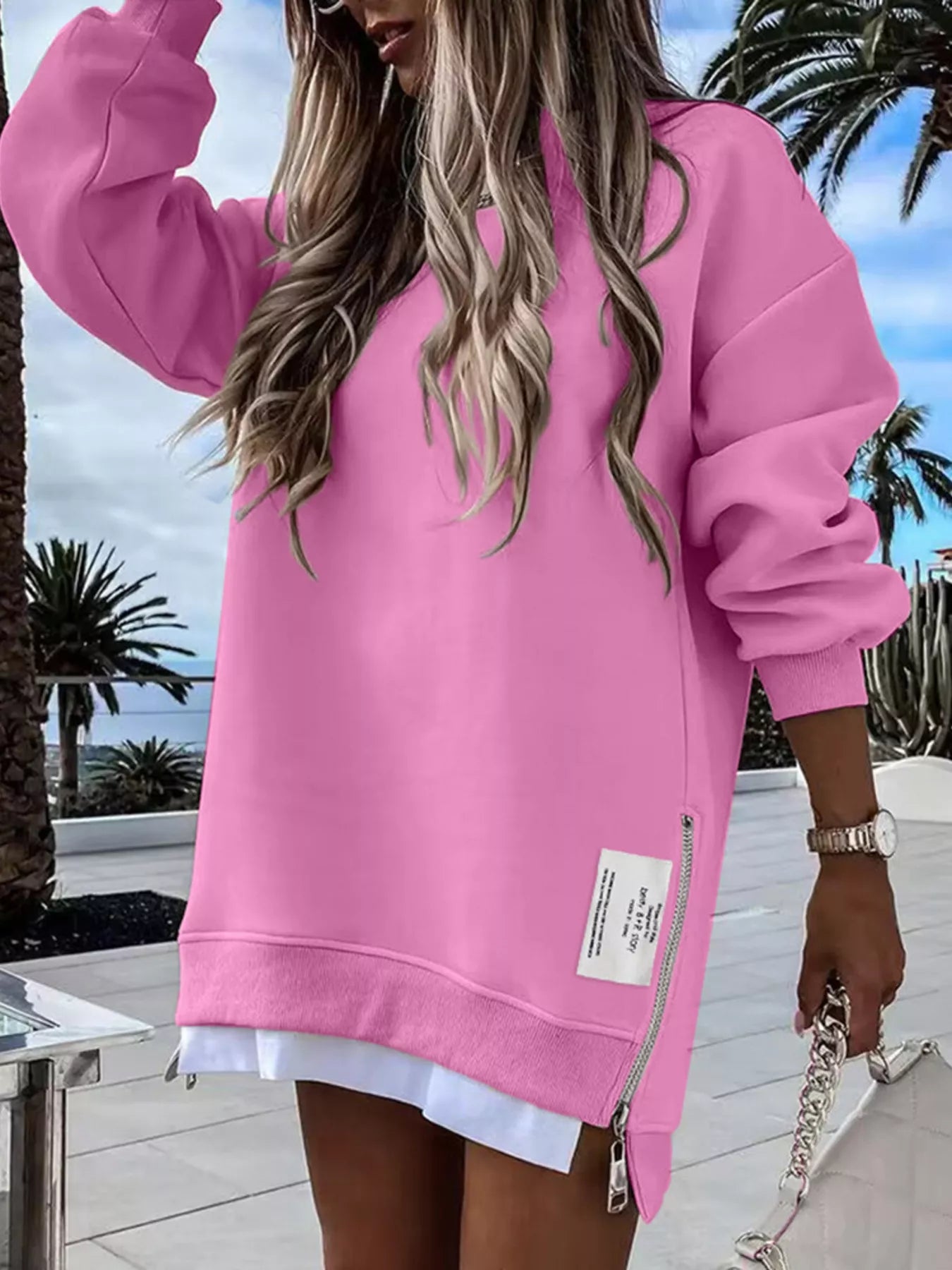 Side Slit Round Neck Long Sleeve Sweatshirt