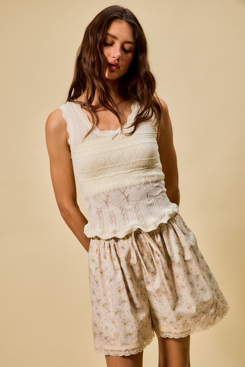 SO ME Scallop Ribbed Sleeveless Knit Top
