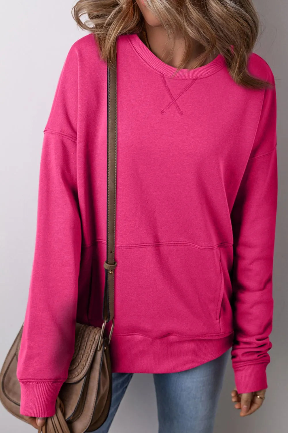 Solid Color Round Neck Long Sleeve Sweatshirt