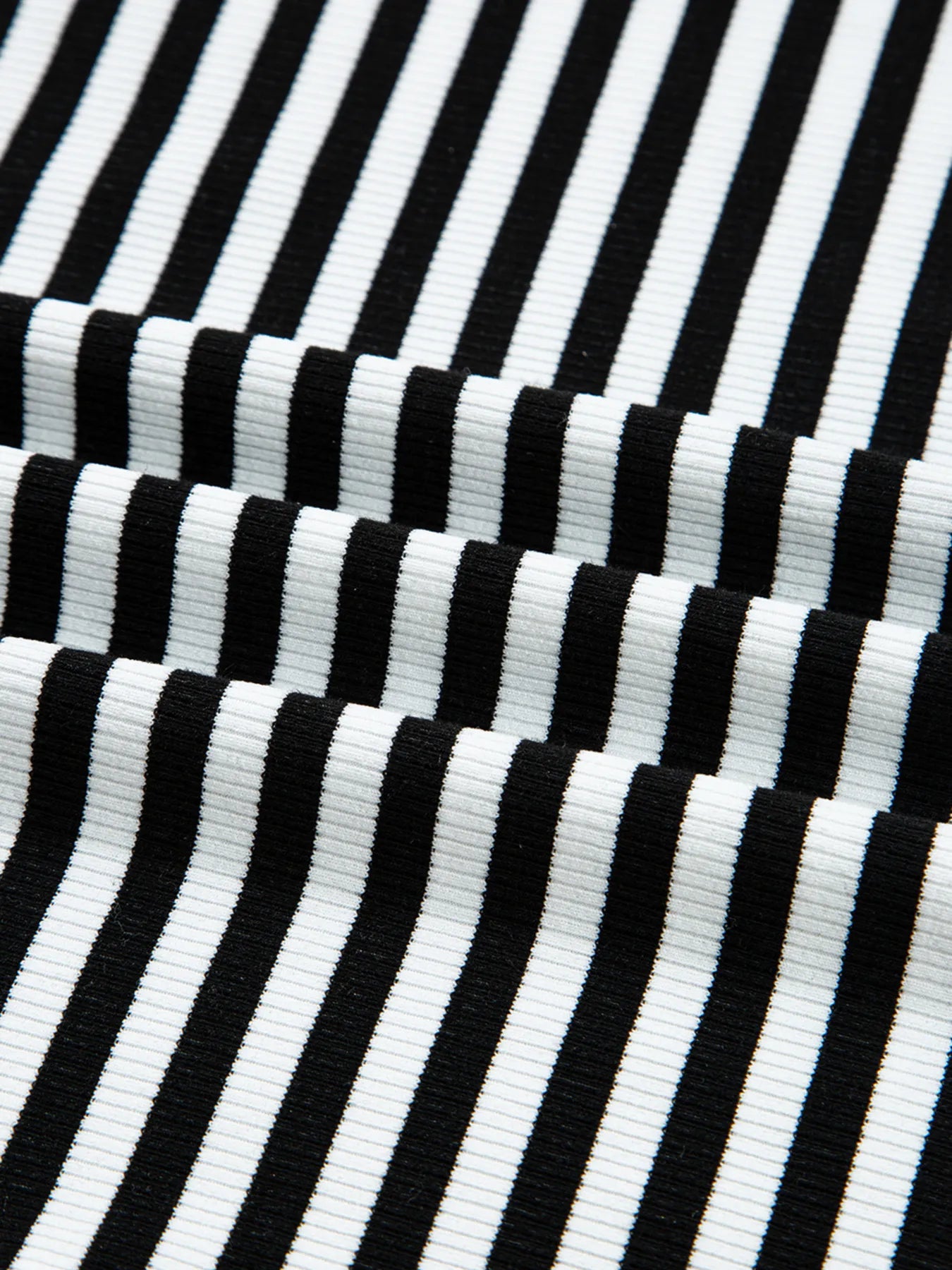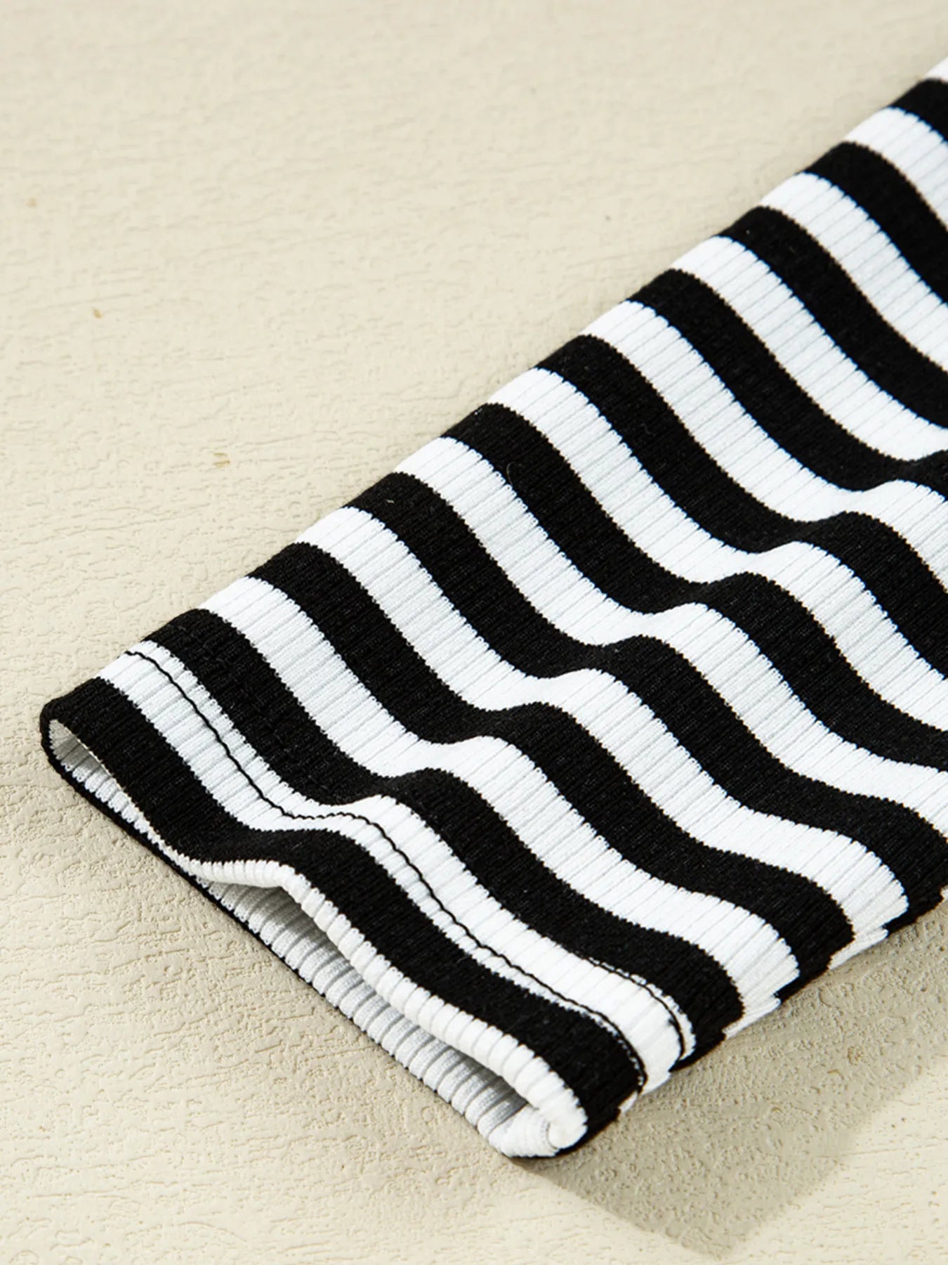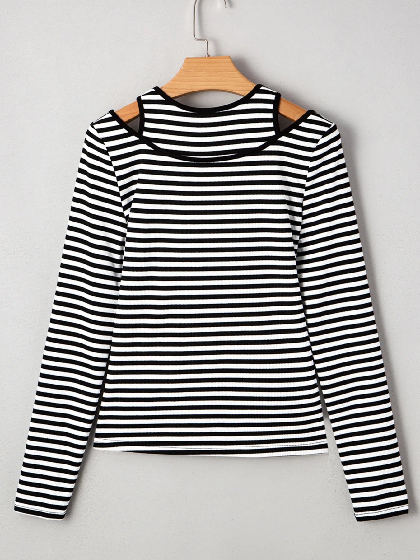 Stripe Double-layer Cold Shoulder Long Sleeve Top