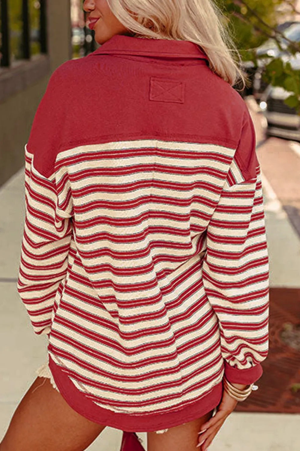 Stripe Johnny Collar Drop Shoulder Sweatshirt