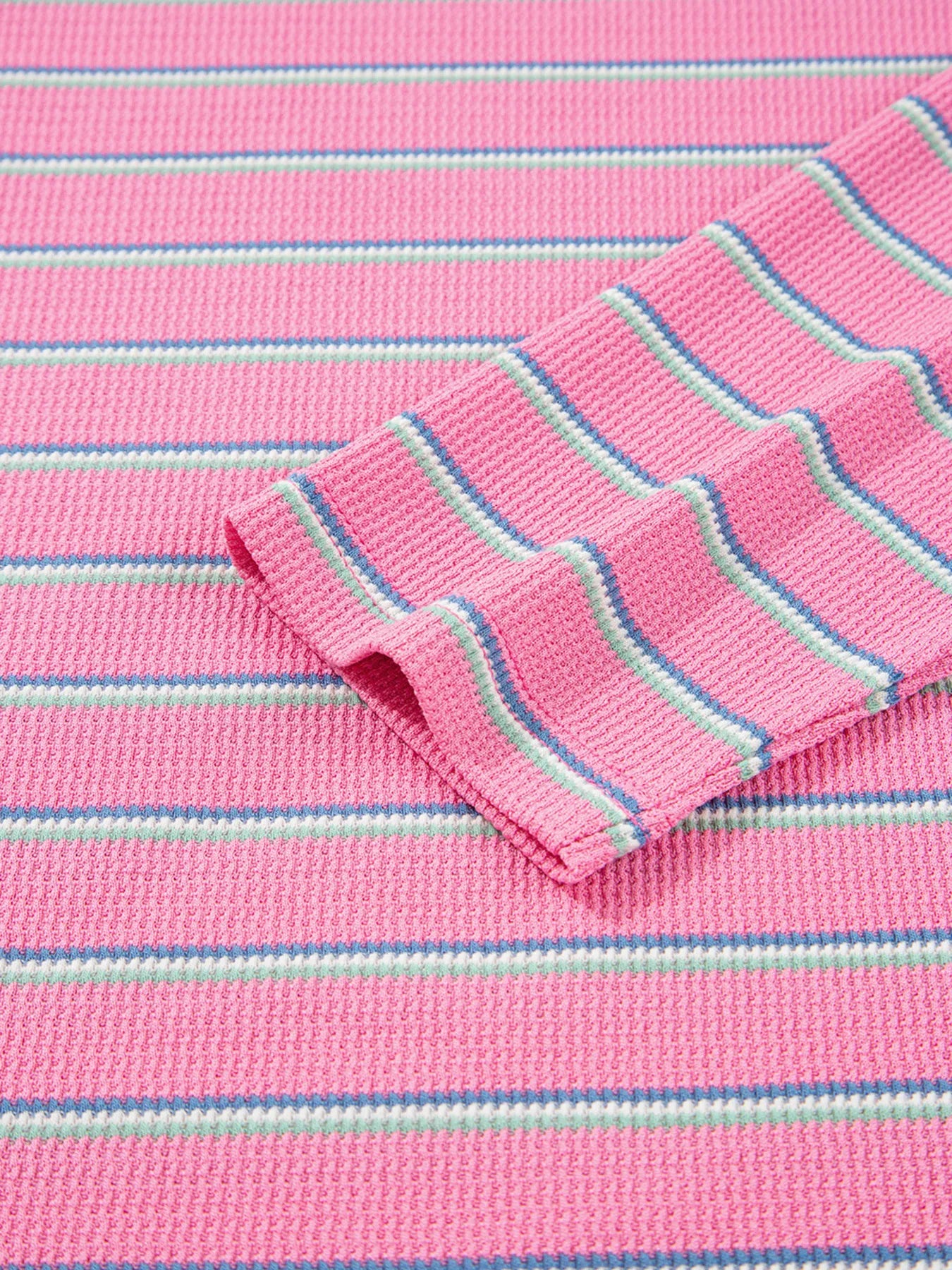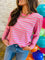 Stripe Textured Knit Round Neck Puff Sleeve Top