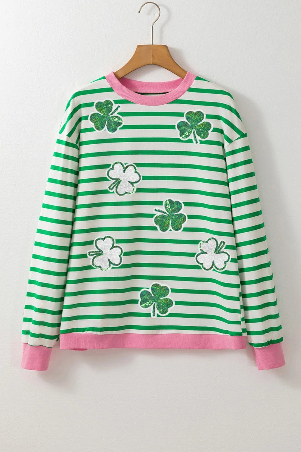 Striped Lucky Clover Long Sleeve Sweatshirt