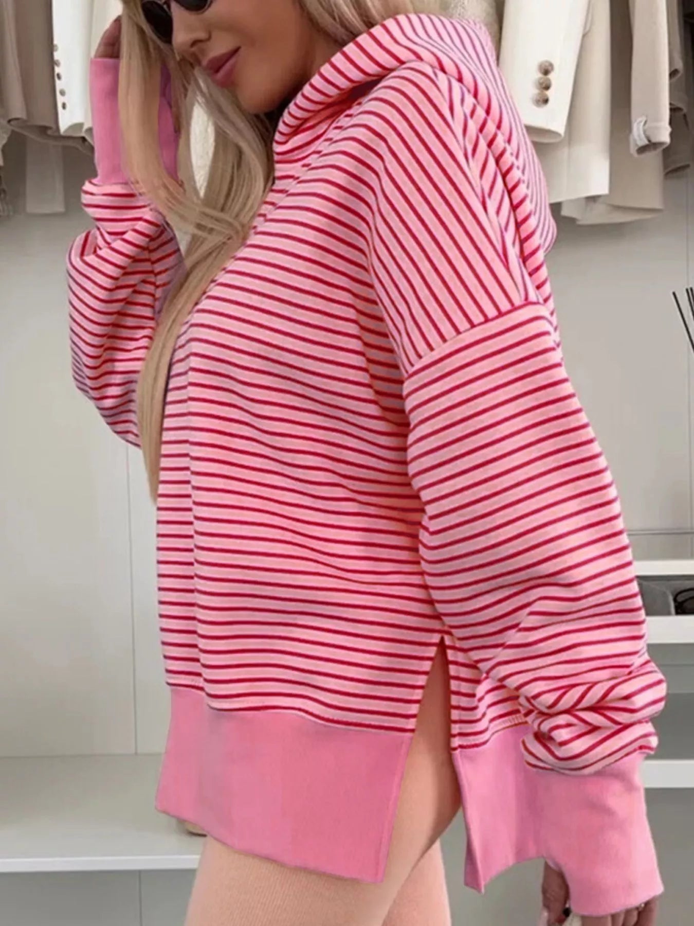 Striped Oversized Hoodie with Kangaroo Pocket
