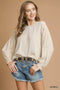 Umgee Striped Embroidered Blouse with Scallop Trim
