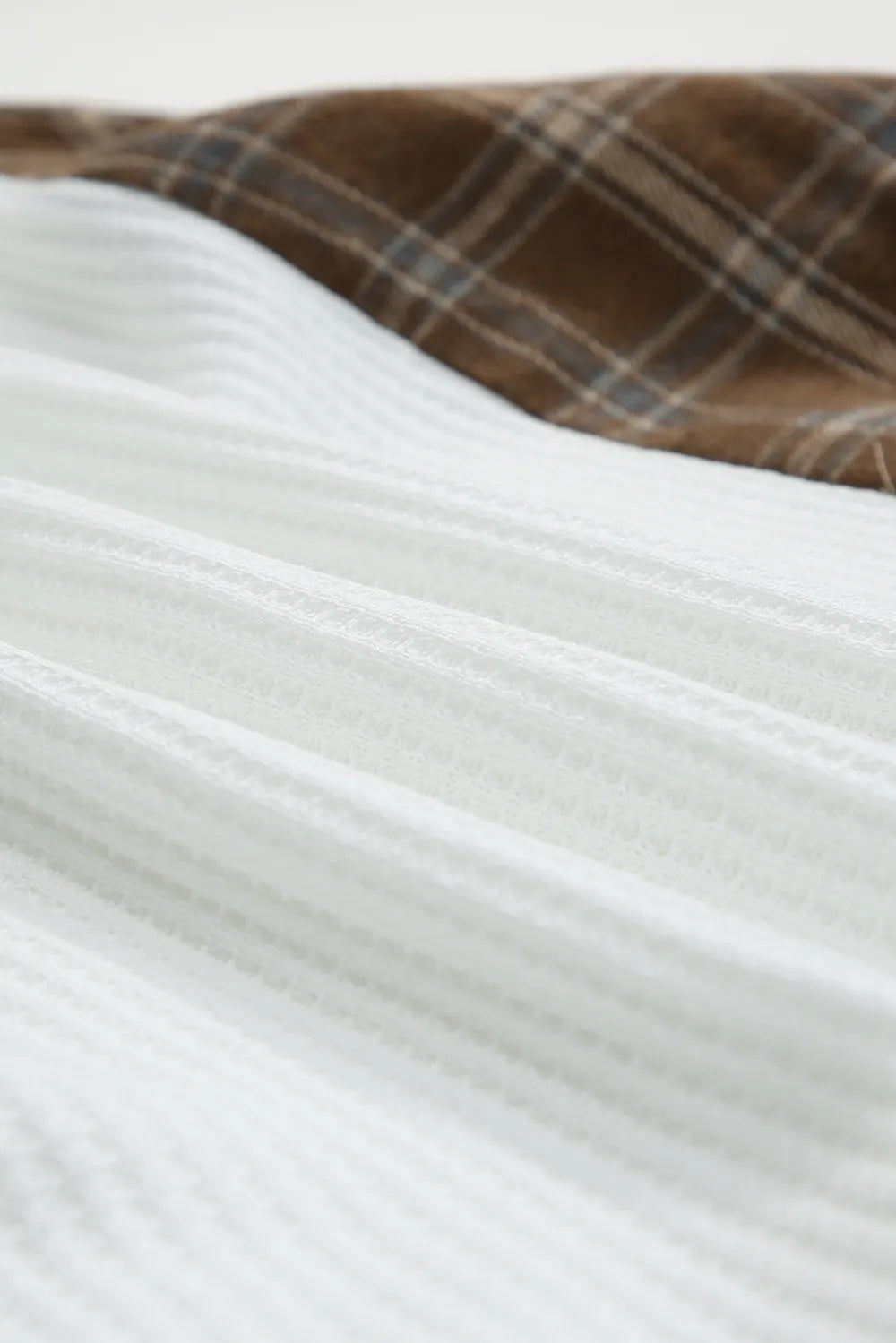 Waffle Knit Plaid Long Sleeve Kangaroo Pocket Hoodie