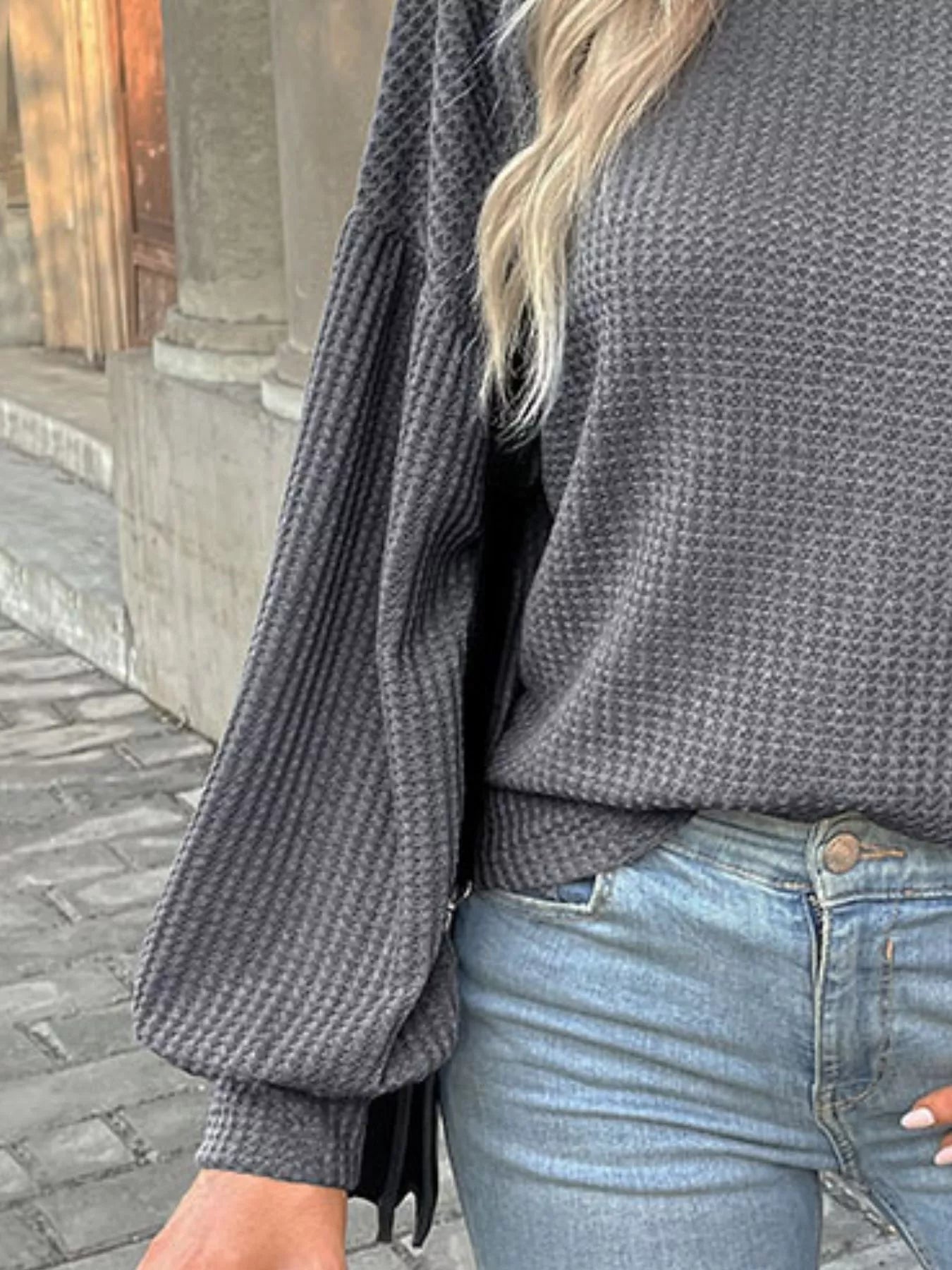 Waffle Knit Round Neck Top