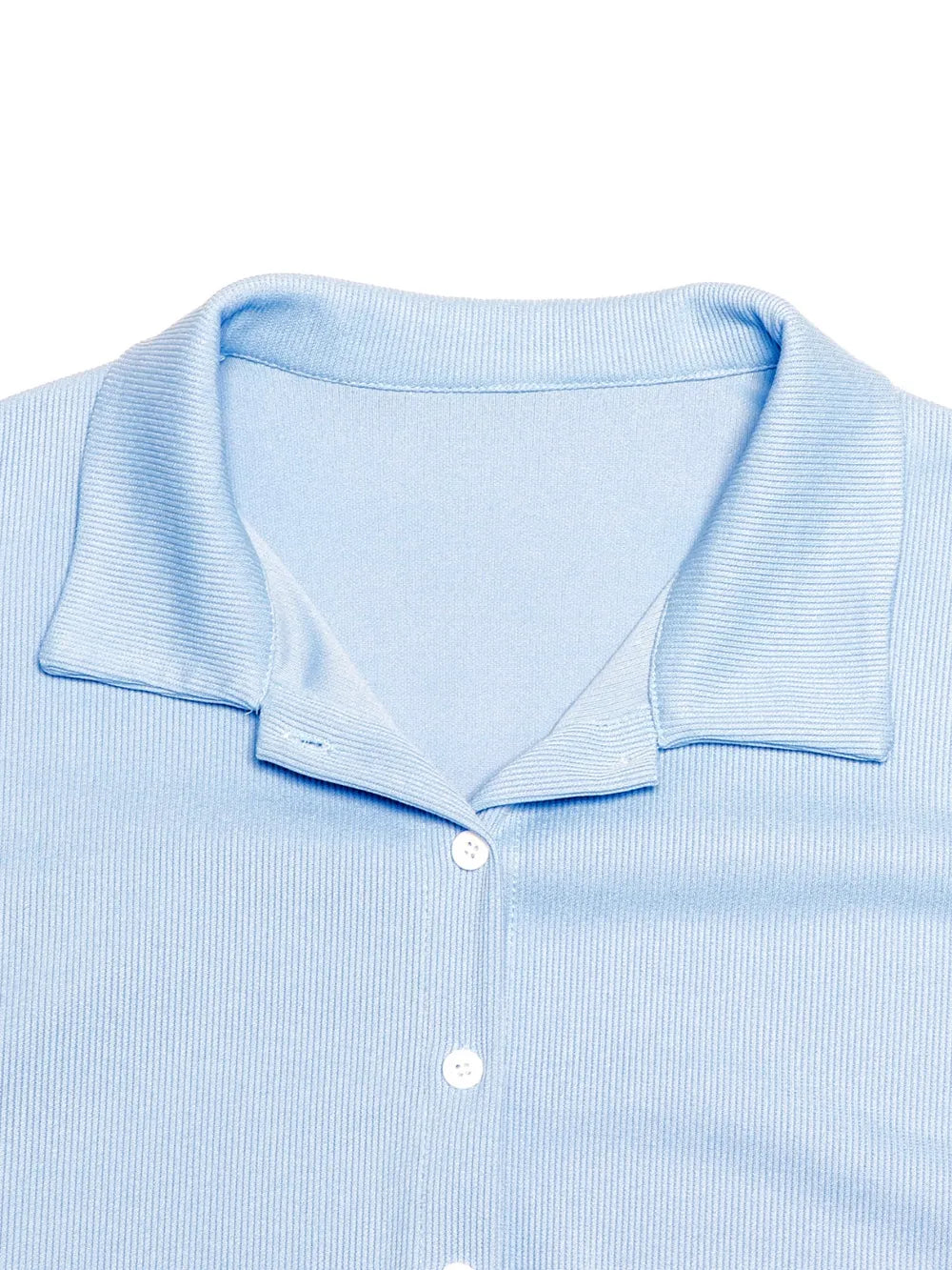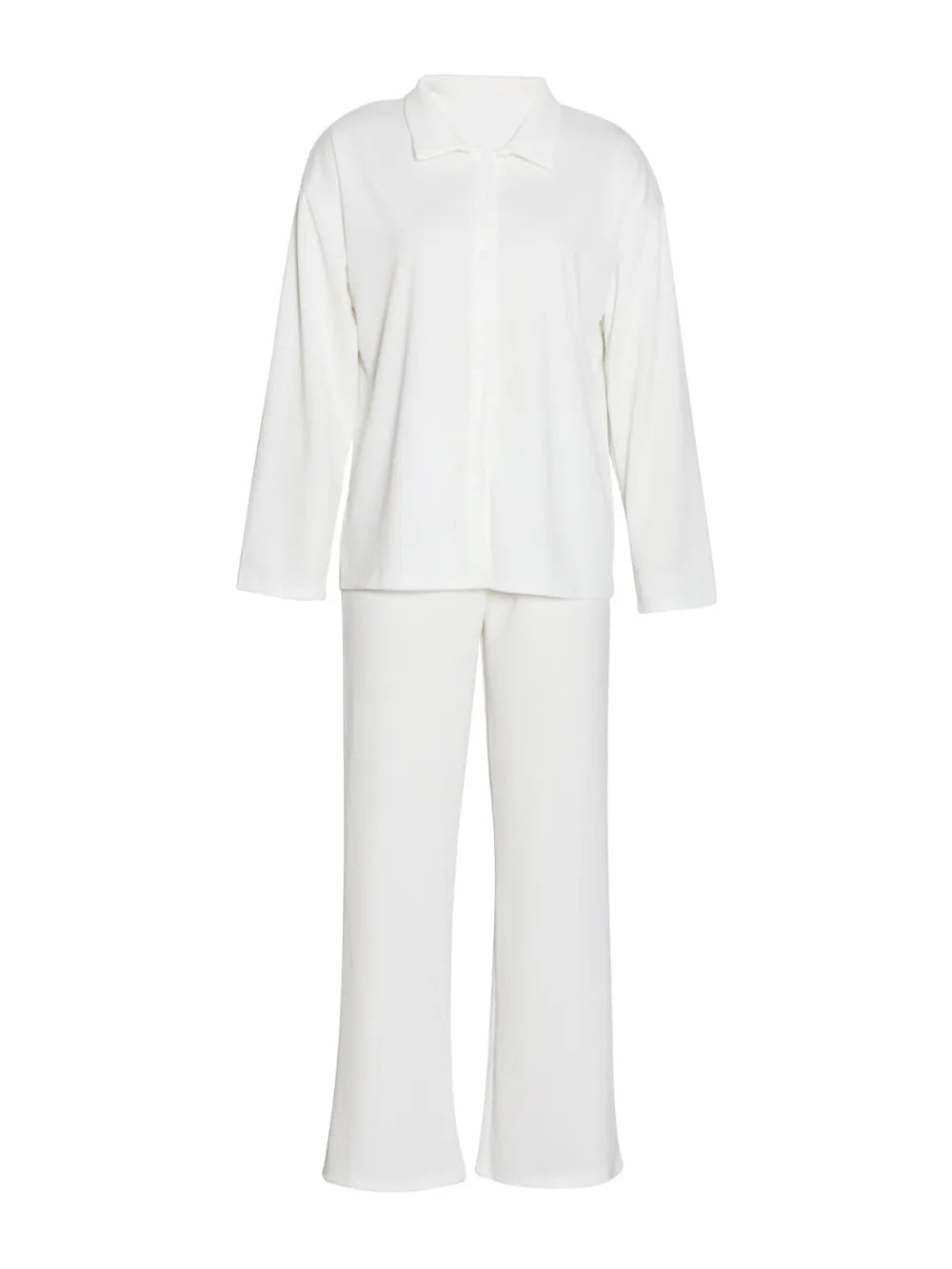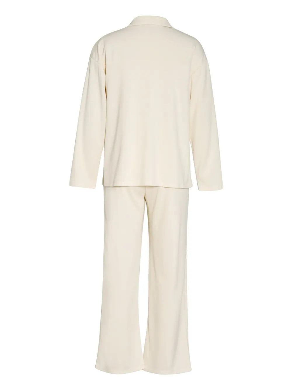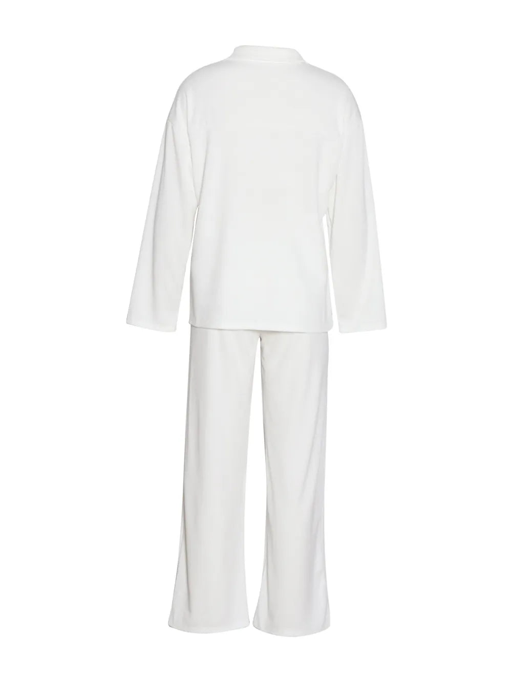 Collared Neck Long Sleeve Top and Drawstring Pants Set