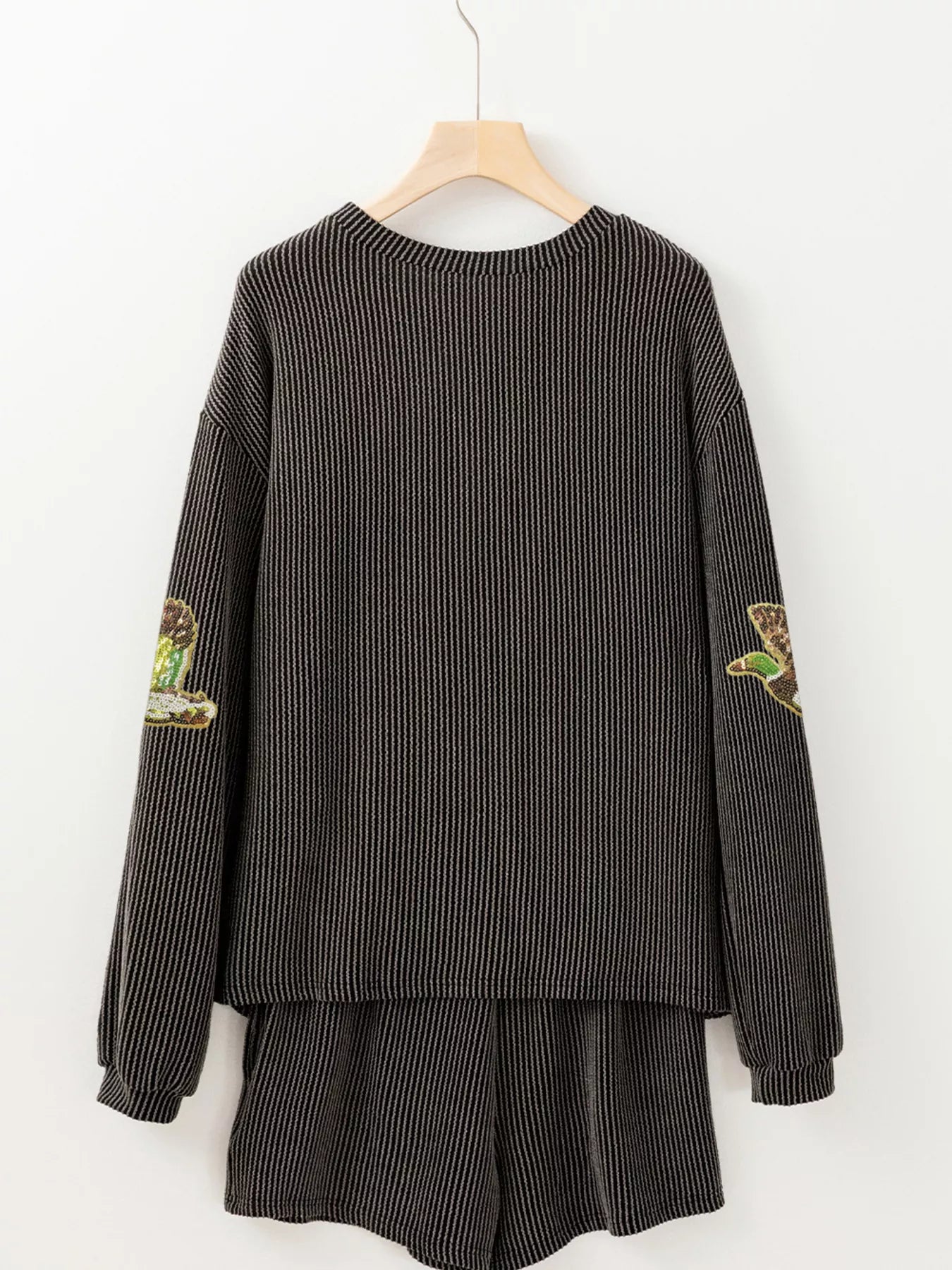 Flying Mallard Sequin Patched Ribbed Long Sleeve Top and Shorts Set