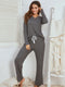 Lace Detail Collared Neck Long Sleeve Top and Shorts Set