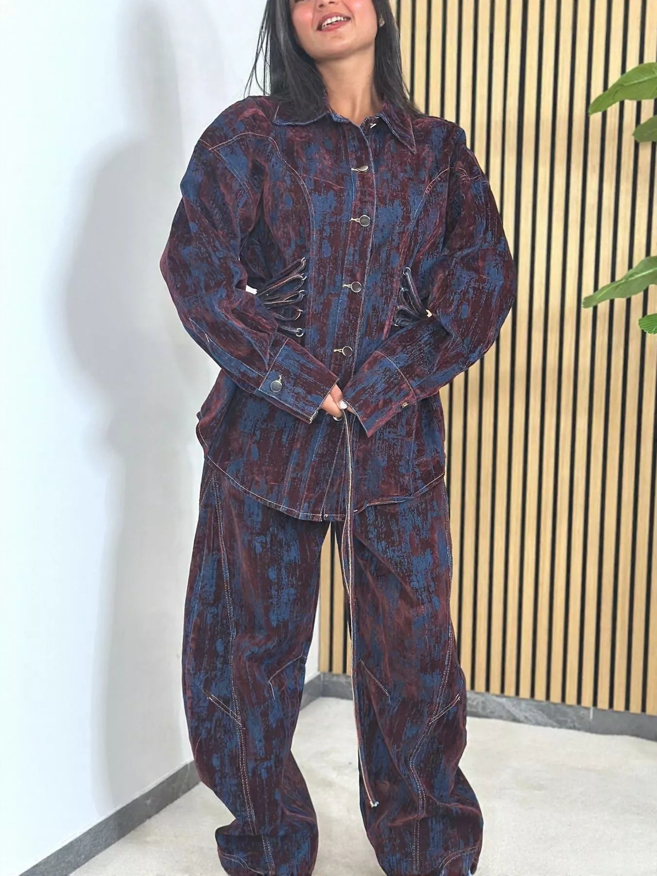 Lace Up Button Up Jacket and Jeans Denim Set