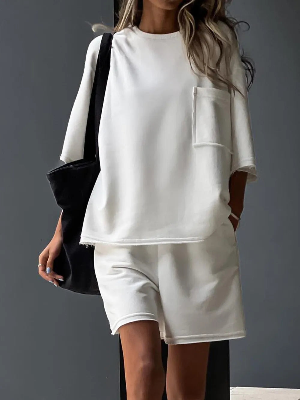Pocketed Round Neck Half Sleeve Top and Shorts Set