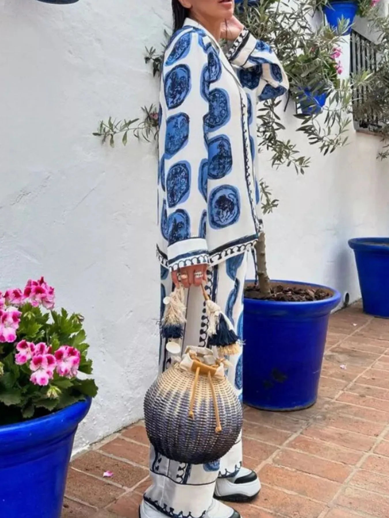Printed Button Up Shirt and Pants Set