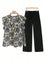 Printed Ruffled Cap Sleeve Top and Pants Set