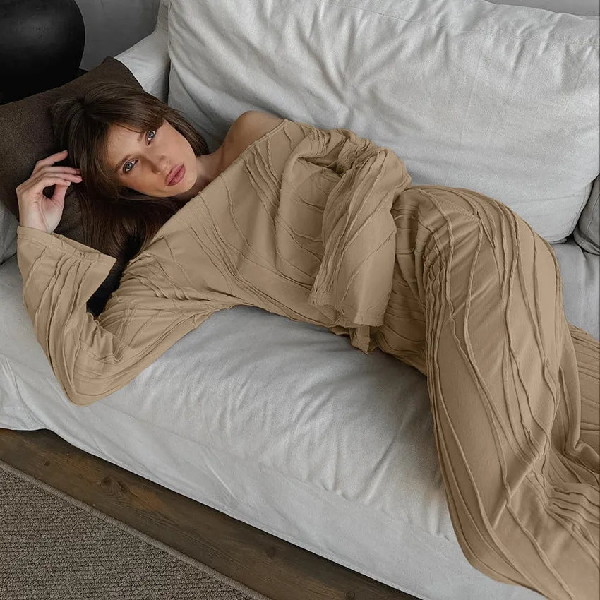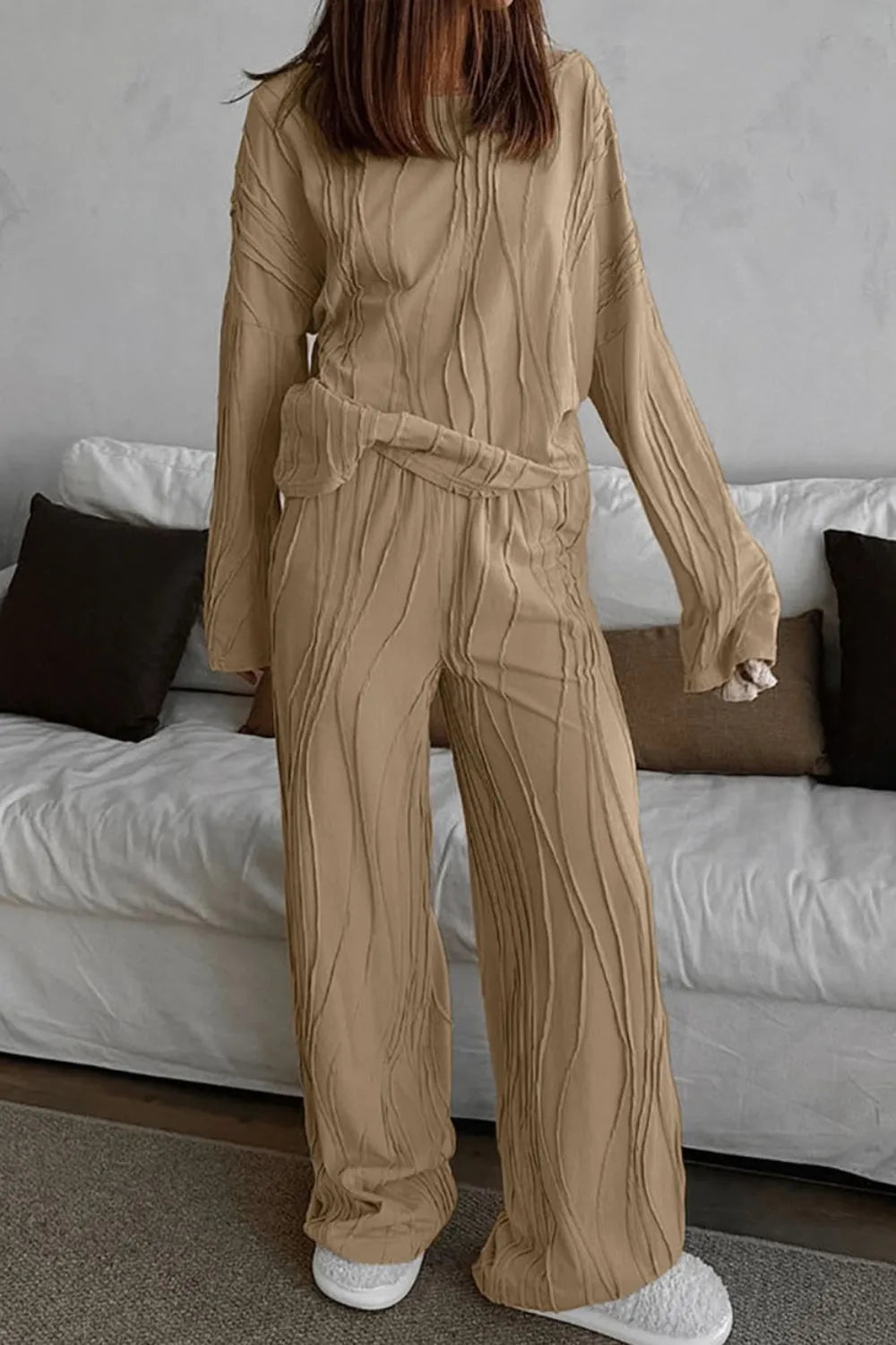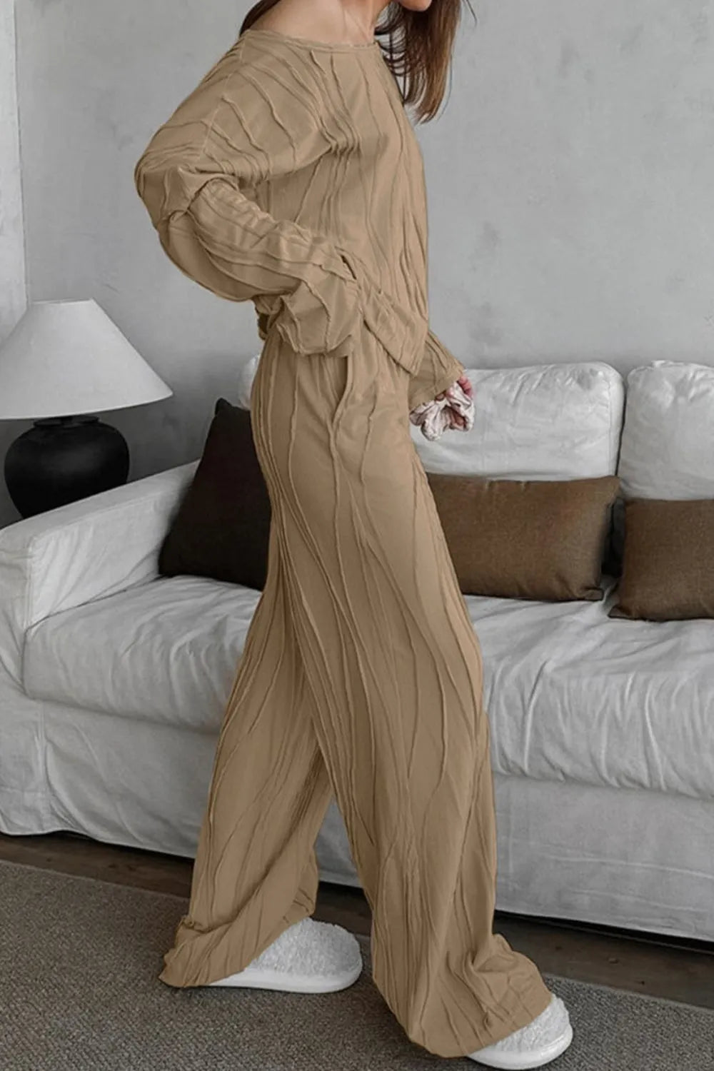 Texture Dropped Shoulder Long Sleeve Top and Pants Set